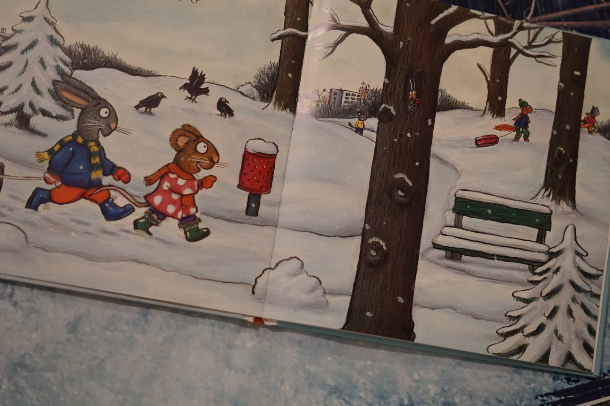 Mišica Popi i zečić Pip, kao i većina dječice, obožavaju snijeg. Nakon što su se toplo obukli (mojoj djeci nije promaknulo da nisu stavili kape 😃) odlaze van i uživaju u snježnim radostima. Simpatična scena hvatanje pahuljica jezikom vratila me na trenutak u djetinjstvo.