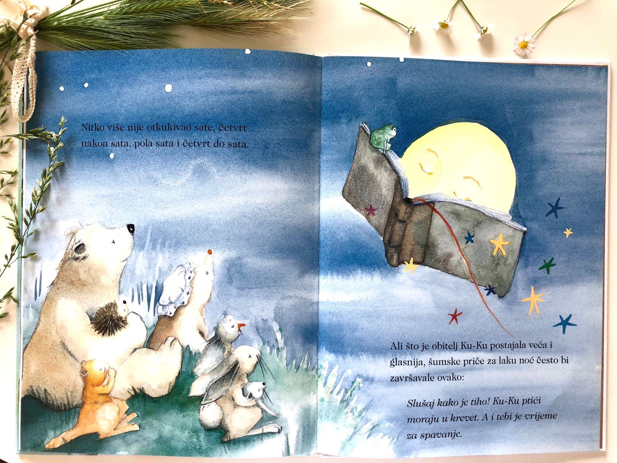 Baš poput stanovnika ove bajkovite šume i ova naša mala klupka sreće se mijenjaju, rastu, a da nemamo vremena to pošteno ni primijetiti. Umjesto da se stalno trudimo držati sve pod špagom, naučiti ih velikim riječima i lekcijama, uživajmo ponekad s njima i u malim stvarima. Naučit će sve što trebaju znati, postat će sve što trebaju postati. Neće se ni njima ni nama dogoditi ništa loše ako barem na kratko prestanemo otkukivati vrijeme i kukati zbog stiske istoga. Jasno, ne možemo poput gospodina Ku-Kua dugo zapostaviti svoje obaveze, ali povremeno možemo zastati i isključiti alarme, podsjetnike, unutarnje otkukivanje i sva moranja te se posvetiti osobama i sitnicama koje volimo.