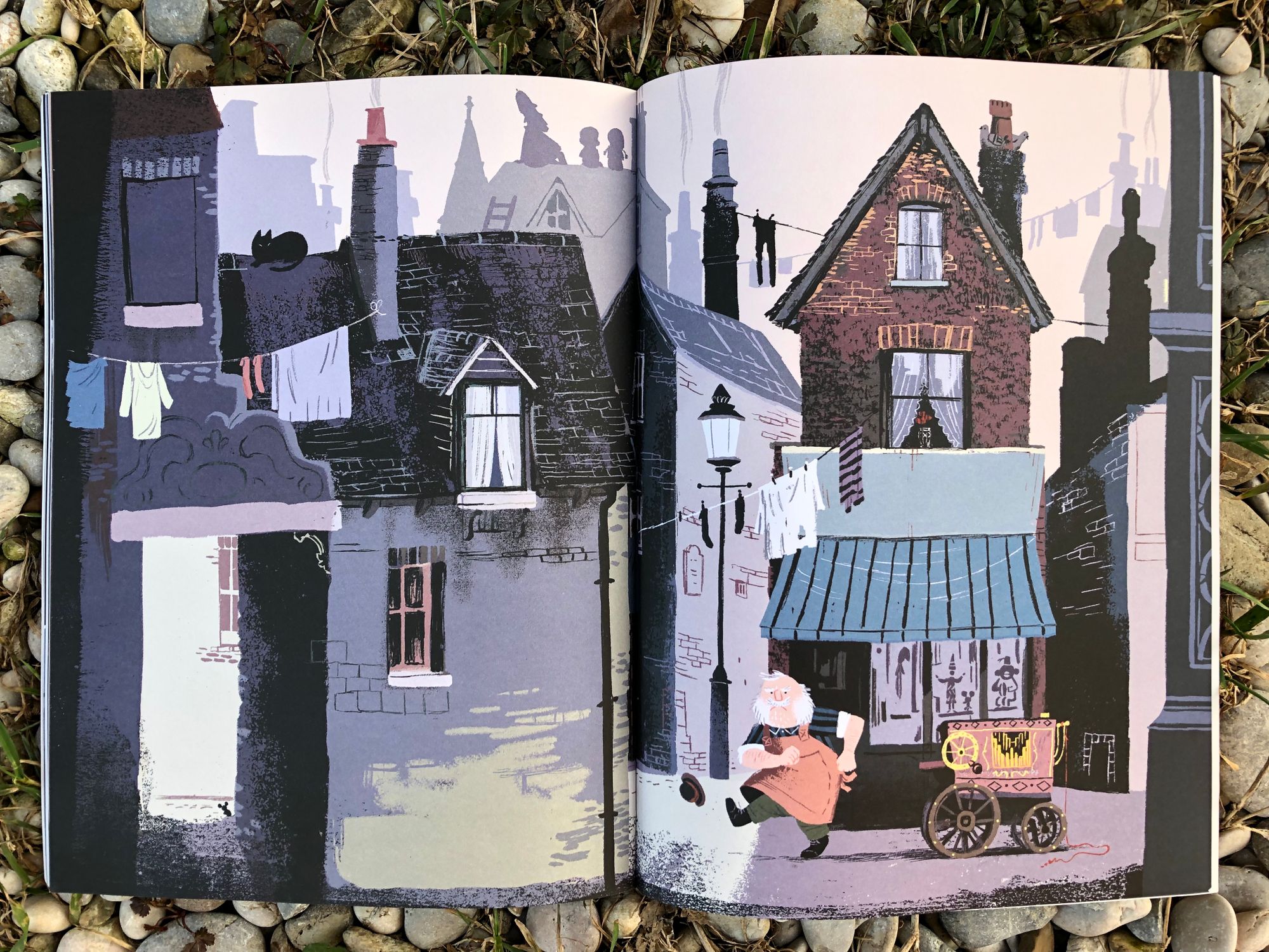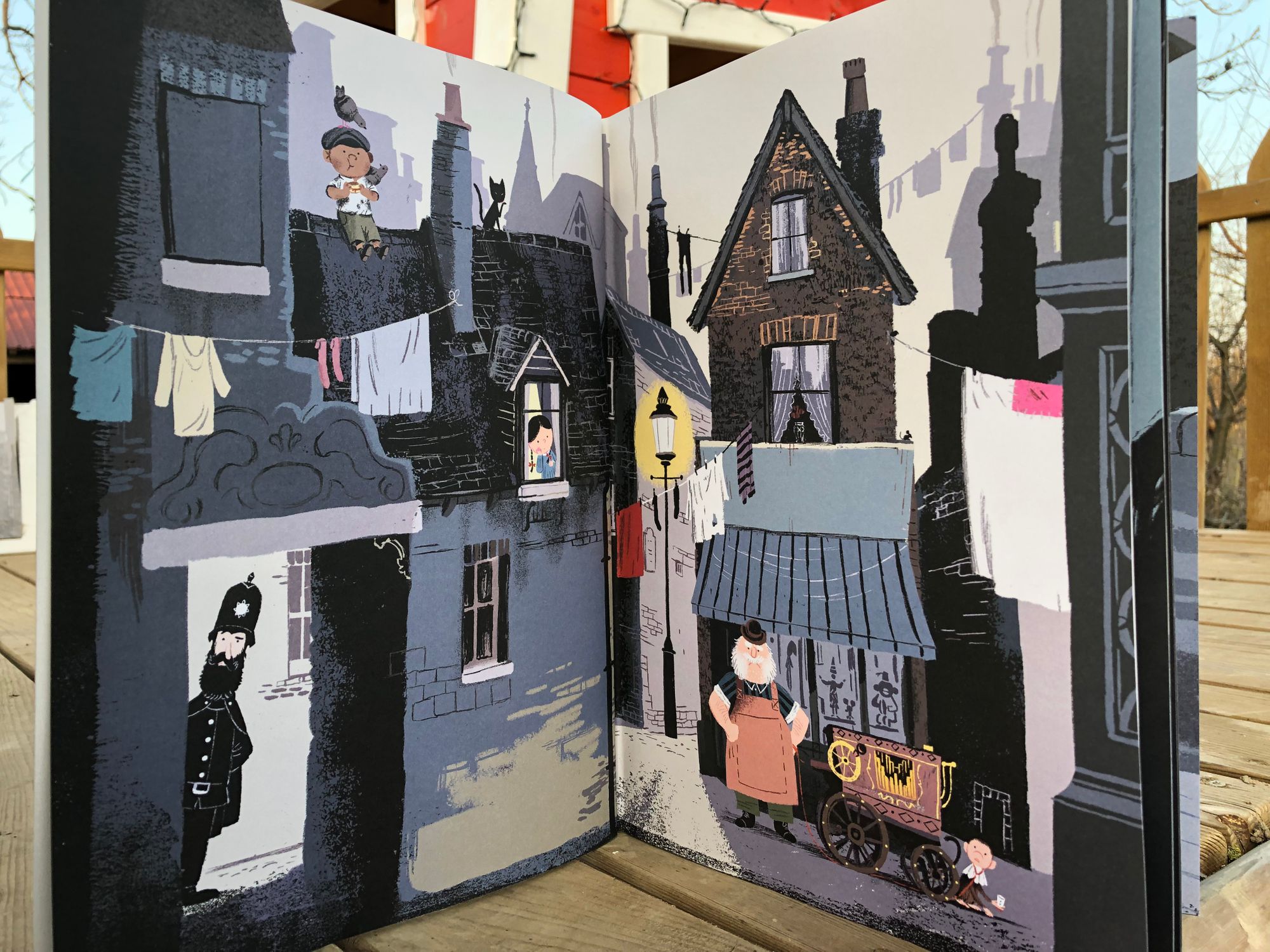Početak priče je prikazan na fantastično ilustriranoj duplerici koja prikazuje glavne likove priče. To su djevojčica Rubi, dječak Sam, policajac Vickers te stari ulični orguljaš.