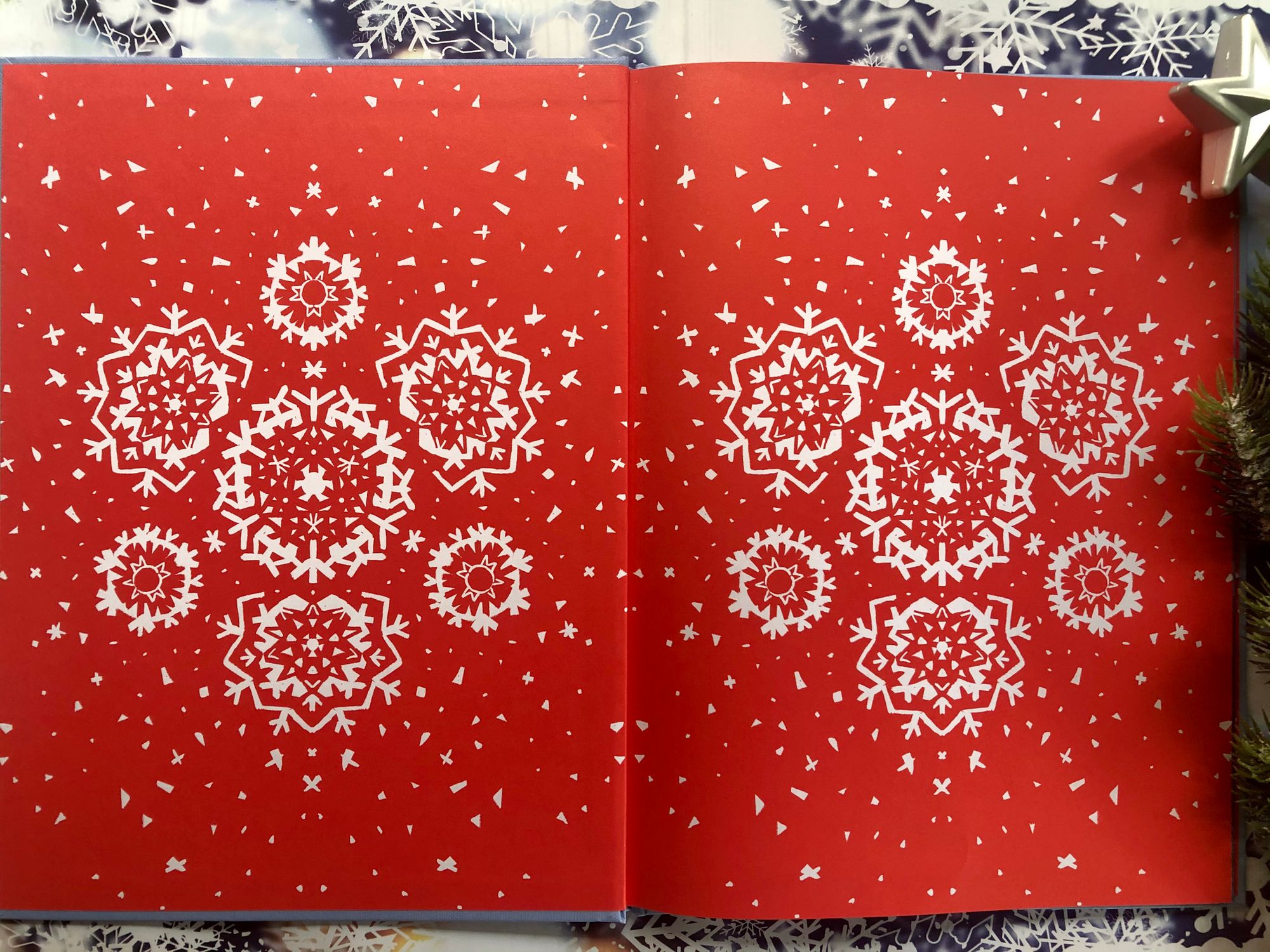 Slikovnica je tvrdog uveza s dodatnim, predivno ilustriranim omotom, no mene je potpuno osvojio dizajn korica i predlista, mislim da božićnije od toga ne može.