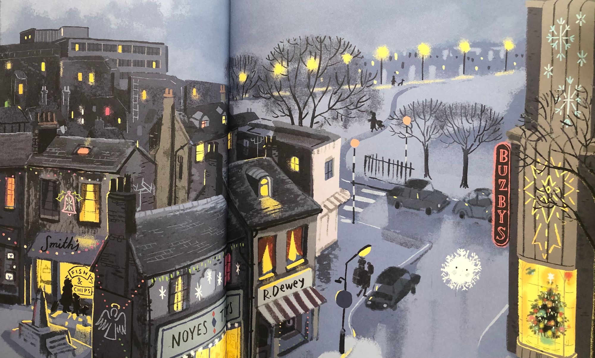 Već se u prethodnim slikovnicama potvrdilo da je Davies majstor detalja posebnog značenja u ilustracijama. Tako je i ovaj put. Dečki su oduševljeno uskliknuli prepoznavši Nou u žutoj kabanici (iz Olujnog kita) u snježnoj kugli i majmunčića u balonu na vrući zrak (iz Grotlyna) u izlogu s božićnim drvcem. Sigurna sam da ćemo daljnjim čitanjem otkriti još zanimljivih detalja.