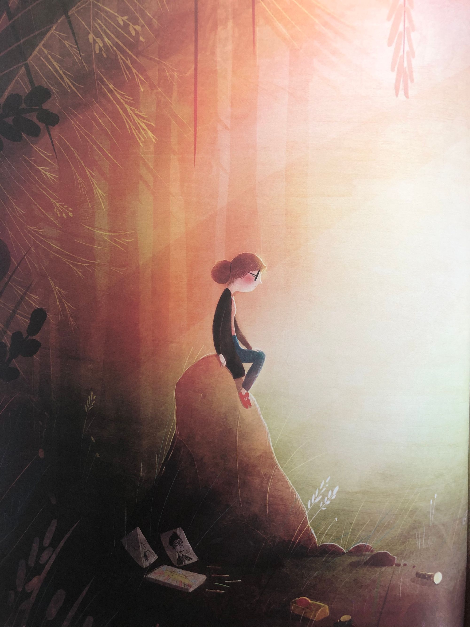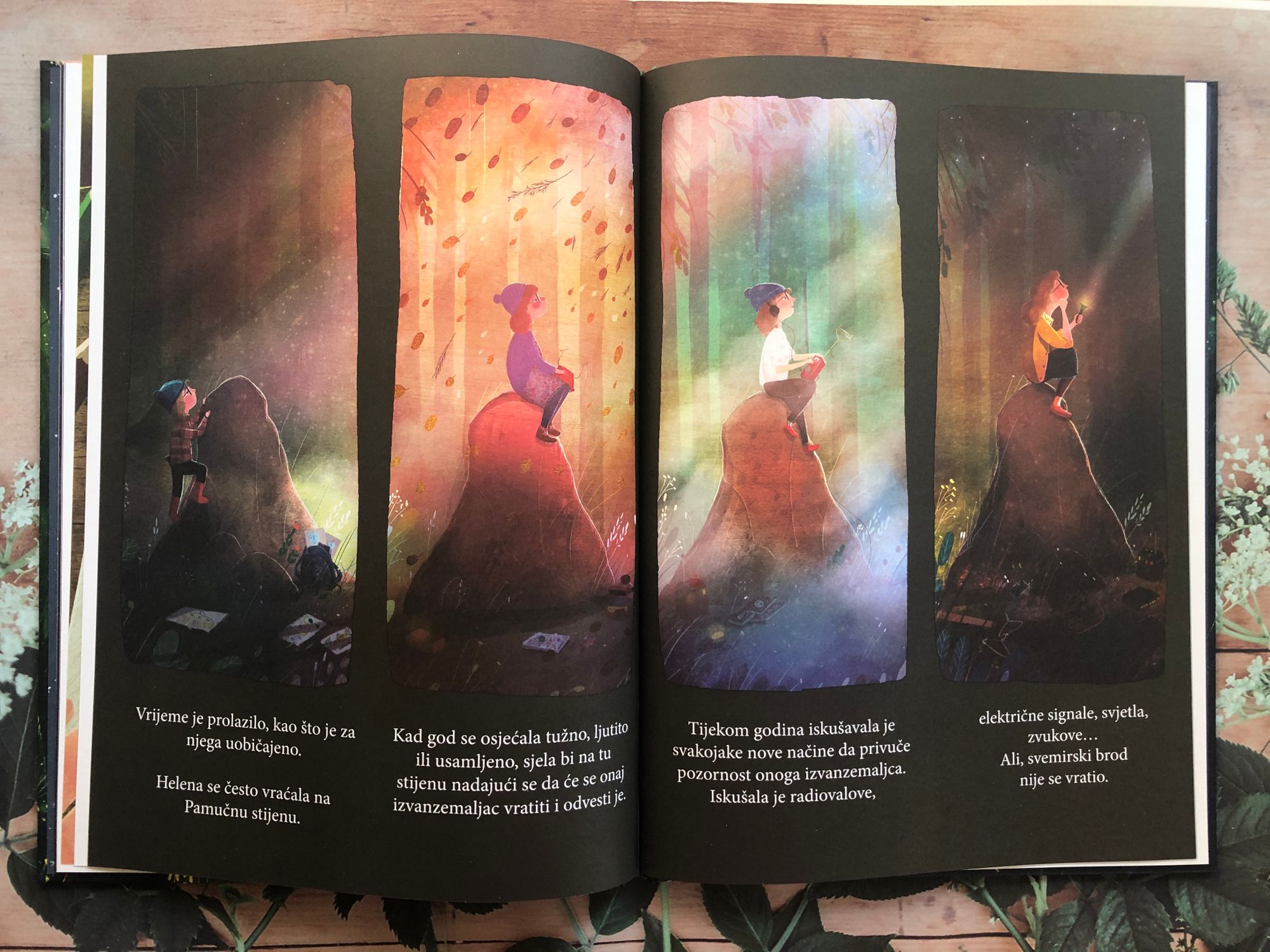 Zbog svoje očite ljepote, ali i mudro i nenametljivo, nježnim nitima utkane velike životne istine, ova Litchfieldova slikovnica je ostavila na mene do sad najjači dojam. Stisnule su se glasnice i zapekle oči jer sam se prepoznala u onoj malenoj, introvertnoj Heleni koja se često osamljivala i bježala u svijet maštanja. A probudila je i ogromnu grižnju savjesti jer ima dana kada umor, usamljenost, ljutnja i tuga učine svoje pa poželim pobjeći na neko tiho, mirno mjesto na kojem bih se pošteno odmorila i uživala u sitnicama, poput vruće kave, na miru pojedenog obroka, duge tople kupke ili jednostavno obične tišine, koja mi, otkako sam sletjela na planet Majčinstvo, spada u sferu znanstveno-fanstastičnog koliko i bliski susret s vanzemaljcima.