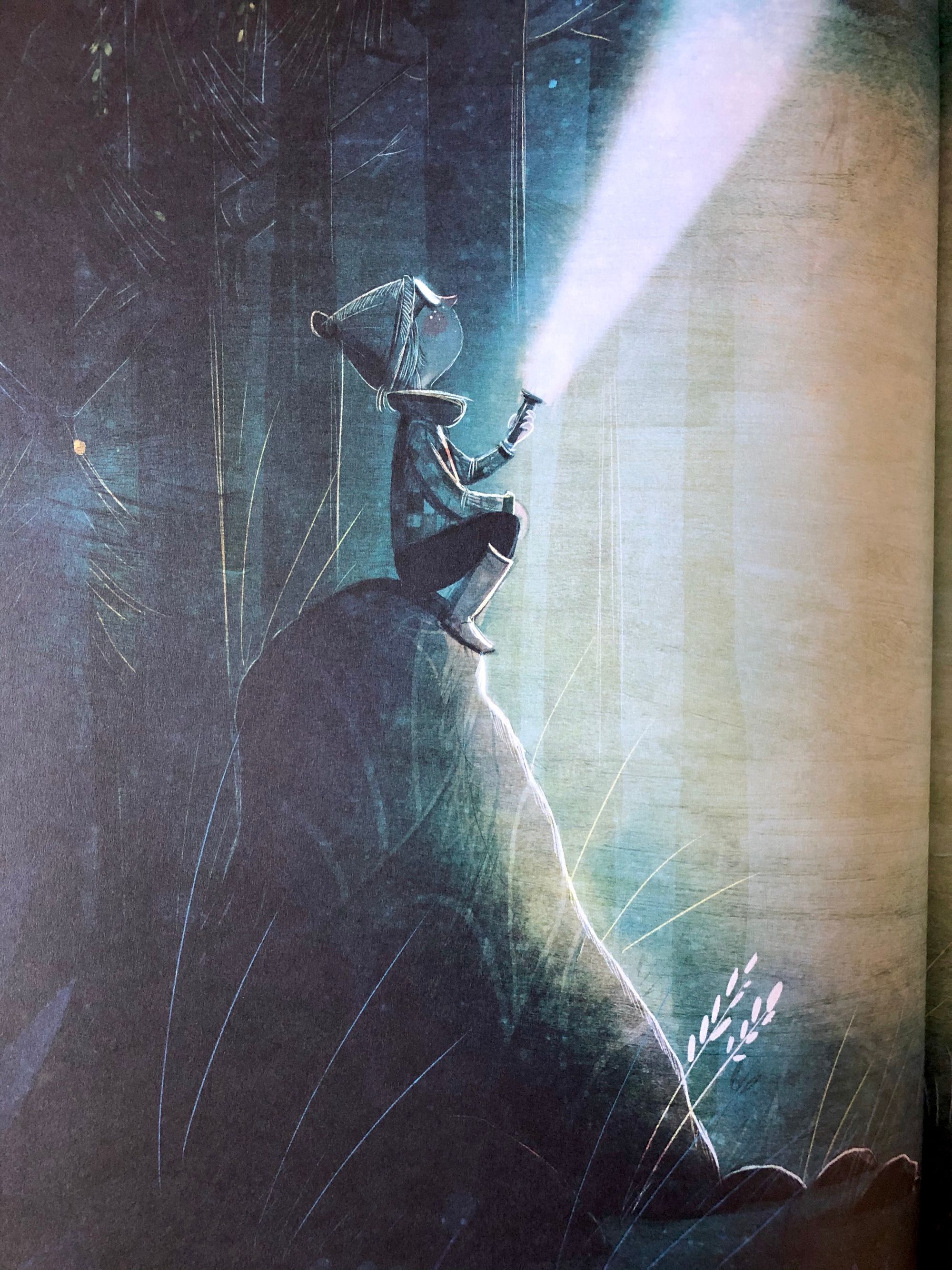Ovakve stranice, potpuno bez teksta, ali spektakularno oslikane, brojne su u slikovnici, te preuzimaju glavnu riječ upravo u najvažnijim dijelovima priče.