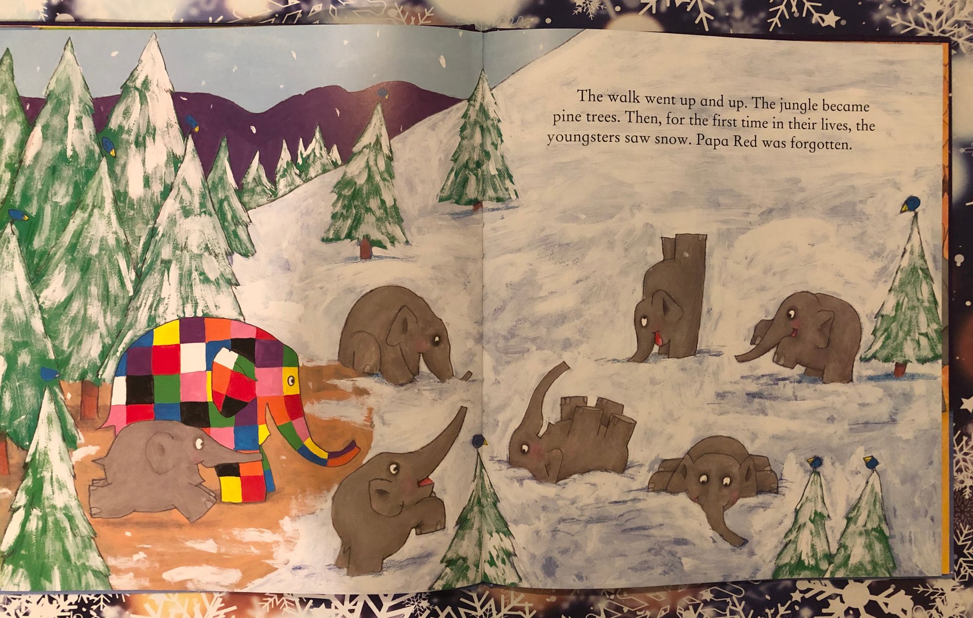 Visoko na planini mališani prvi put u životu ugledaju snijeg i oduševljeno se zabavljaju, toliko da zaborave na Papa Red-a. Za to vrijeme, dok traži savršeno drvce, Elmer sreće jednog od sobova te dogovori iznenađenje za sloniće. Na povratku mališani pomažu Elmeru nositi drvce. Posebno mi se svidjelo što je Elmer odabrao drvce koje će poslije najlakše vratiti u šumu, gdje će nastaviti rasti, a ne biti odbačeno čim blagdani prođu.