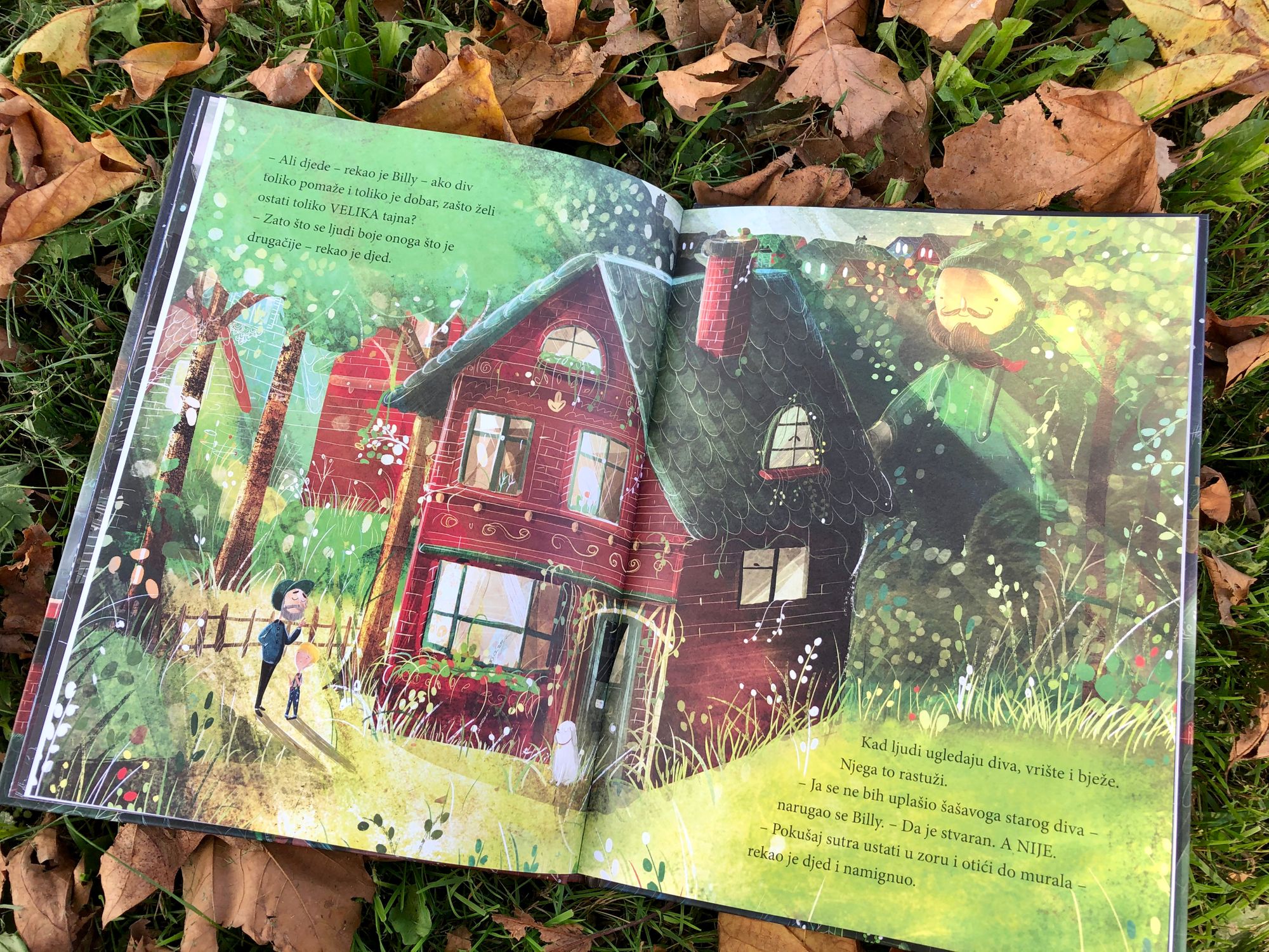 Djedov tajni div im je postao drag već nakon prvog čitanja, tako da smo ga tih dana čitali nekoliko puta dnevno. S vremenom su došle neke nove slikovnice pa se čitanje prorijedilo, a moram priznati da su ga u zadnje vrijeme potpuno zaboravili. Zato sam jučer bila neopisivo sretna i iznenađena vidjevši na stranici nakladnika poznatu naslovnicu s hrvatskim naslovom. Zasluge što možemo uživati u ovoj divnoj priči svakako pripadaju i Aleksandri Barlović, koja je, kao i prethodne dvije, prevela i ovu Litchfieldovu slikovnicu.