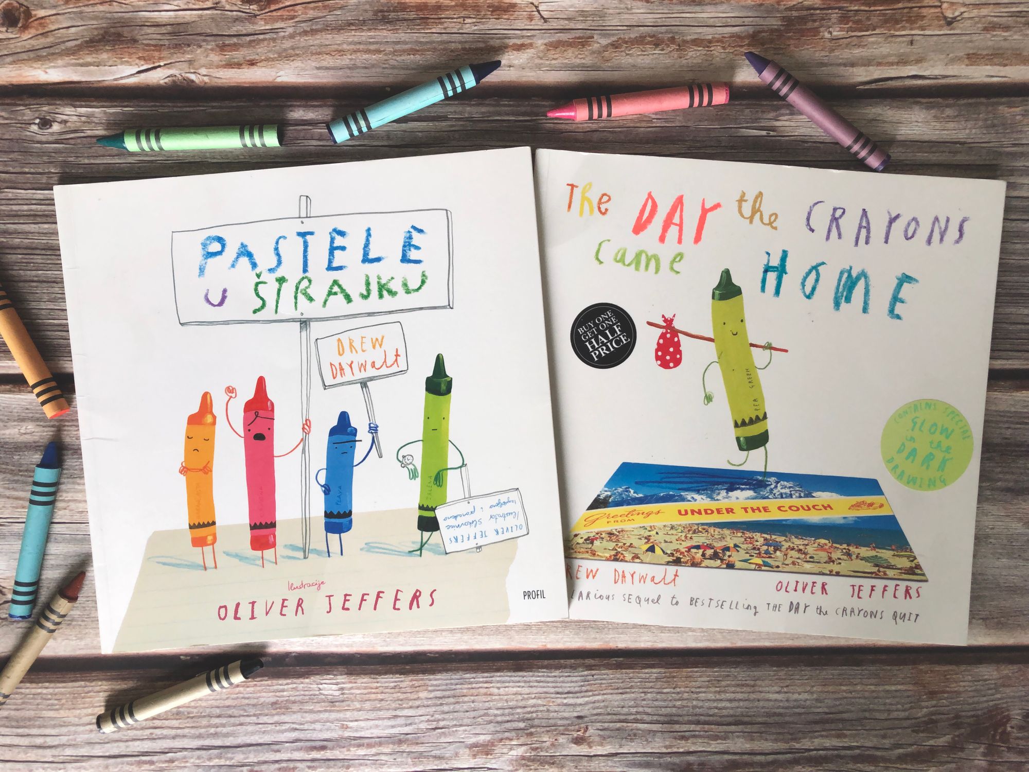 Ove godine slučajno sam naišla na nastavak, slikovnicu “The Day the Crayons Came Home", a kasnije sam otkrila da osim tih postoje još i “The Crayons Book of Colours”, “The Crayons Book of Numbers”, “The Crayons' Christmas” te najnovija “Love from the Crayons”, prigodna za Valentinovo.