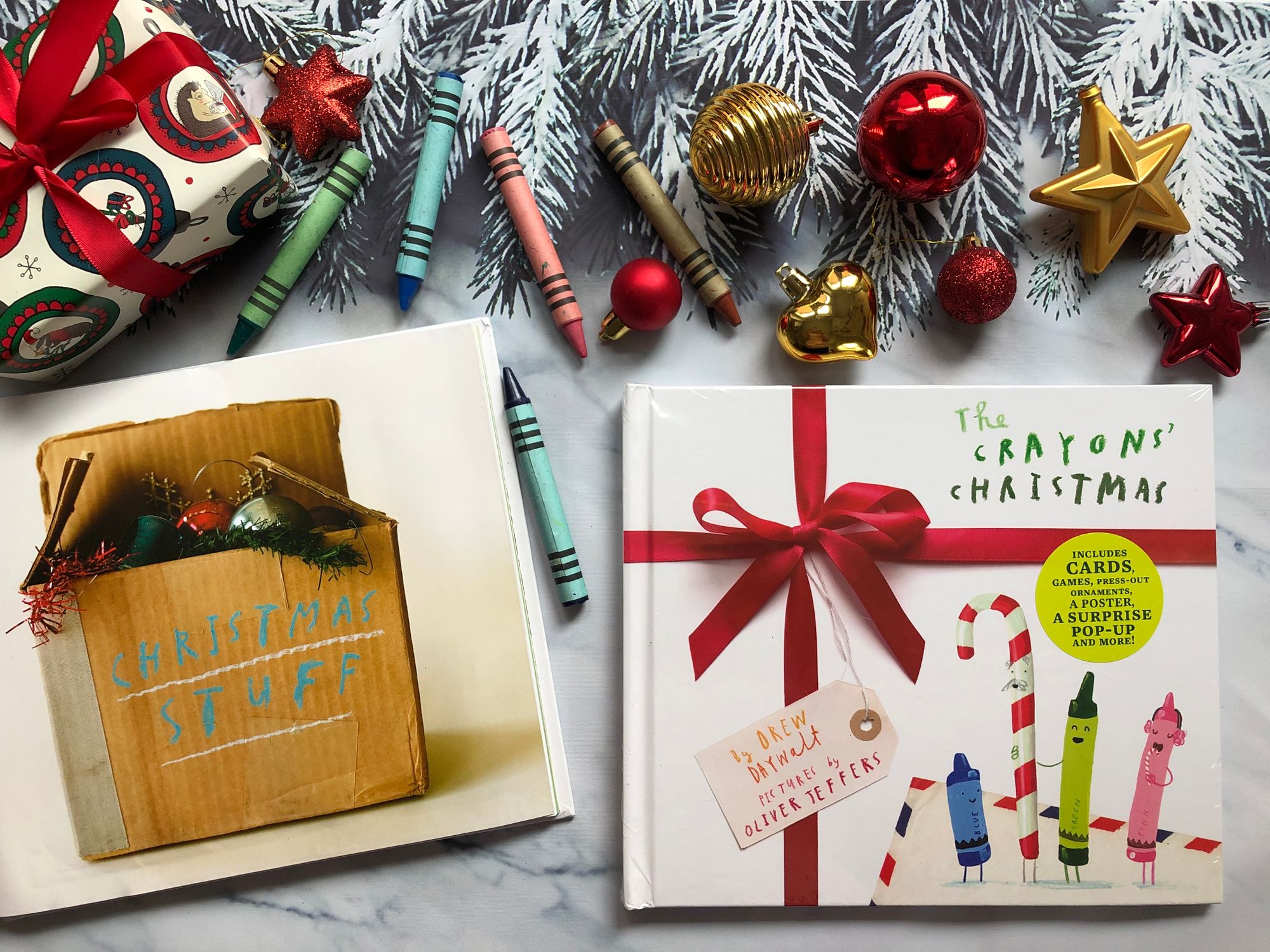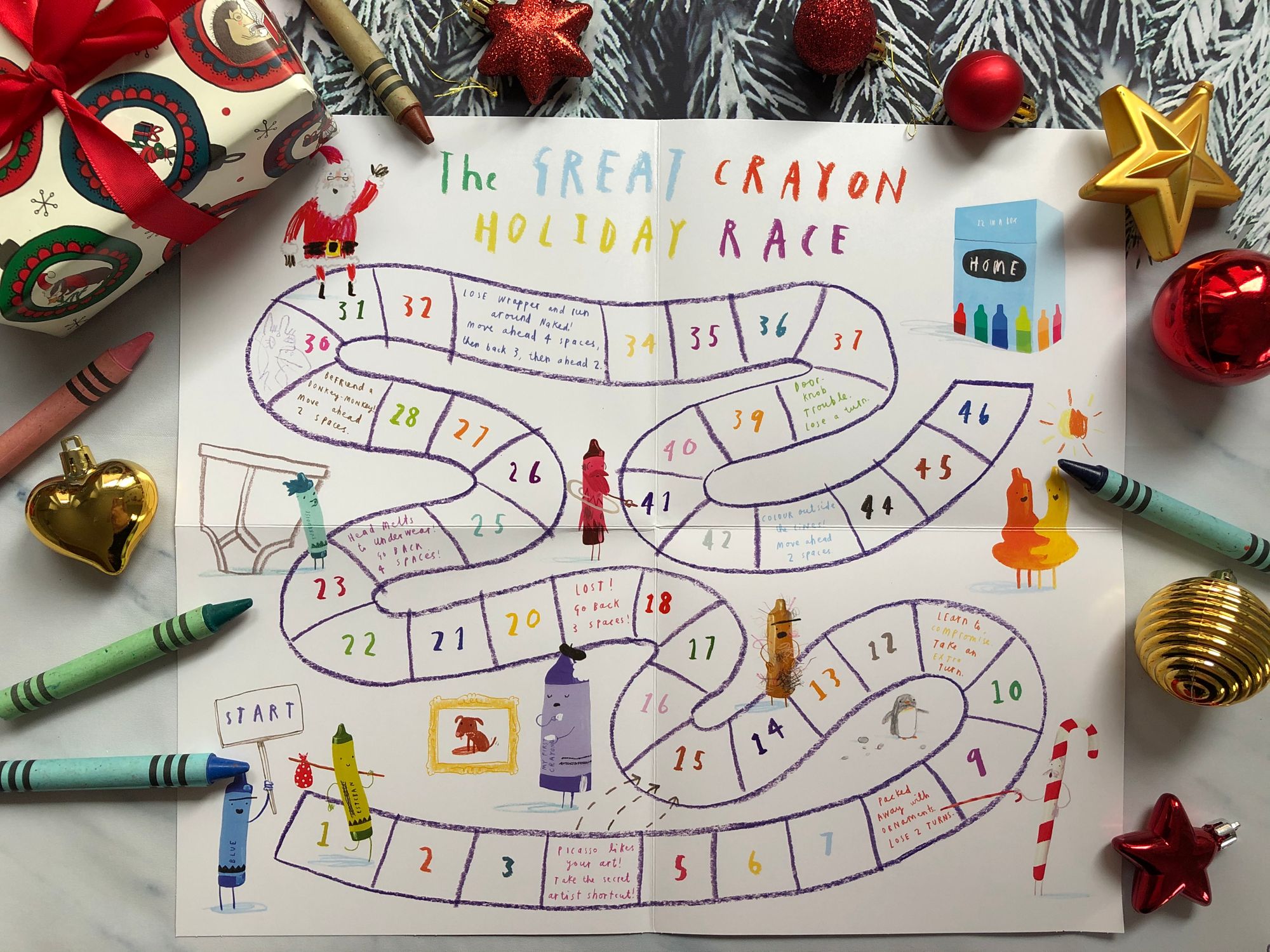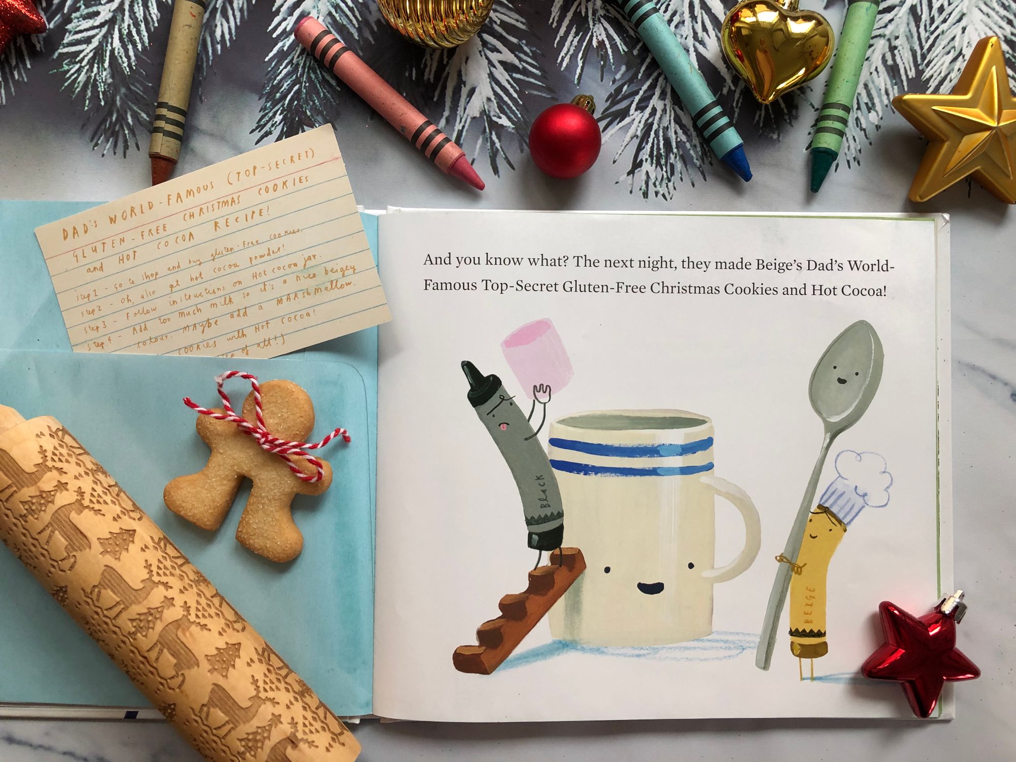 “ The Crayons' Christmas” počinje jednog snježnog prosinačkog dana kada Duncana u izradi božićnih čestitki prekida poštar, donijevši mu pismo. No, pismo nije bilo namijenjeno njemu već onoj jadnoj goloj Pasteli Boje Kože iz prve priče, koja se sramežljivo skrivala noseći Duncanovo donje rublje. U koverti na sljedećoj stranici, uz čestitku koju mu je mama poslala, pronašli smo papirnatu Pastelu Boje Kože i odgovarajuću papirnatu odjeću, baš kakvu smo mi nekada navlačili na one stare papirnate lutke. Dječake je to toliko oduševilo da me počela gristi savjest kako se prije nisam sjetila nabaviti im ili isprintati slične modele lutkica i odjeće. Baš su uživali i kroz cijelu priču, a i poslije, su mijenjali modne kombinacije, ovisno o situaciji u kojoj su zamislili da se naš bivši golać nalazi.