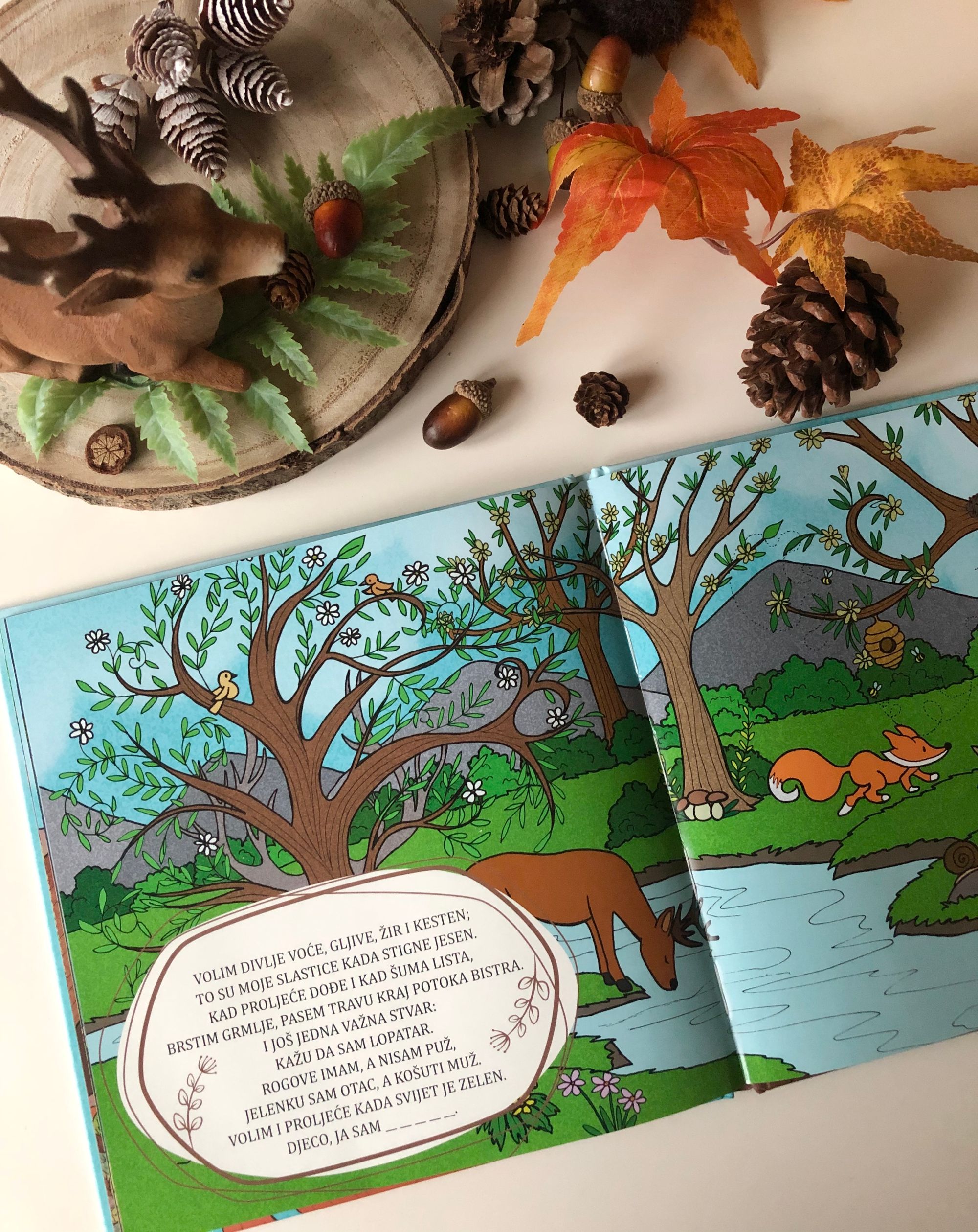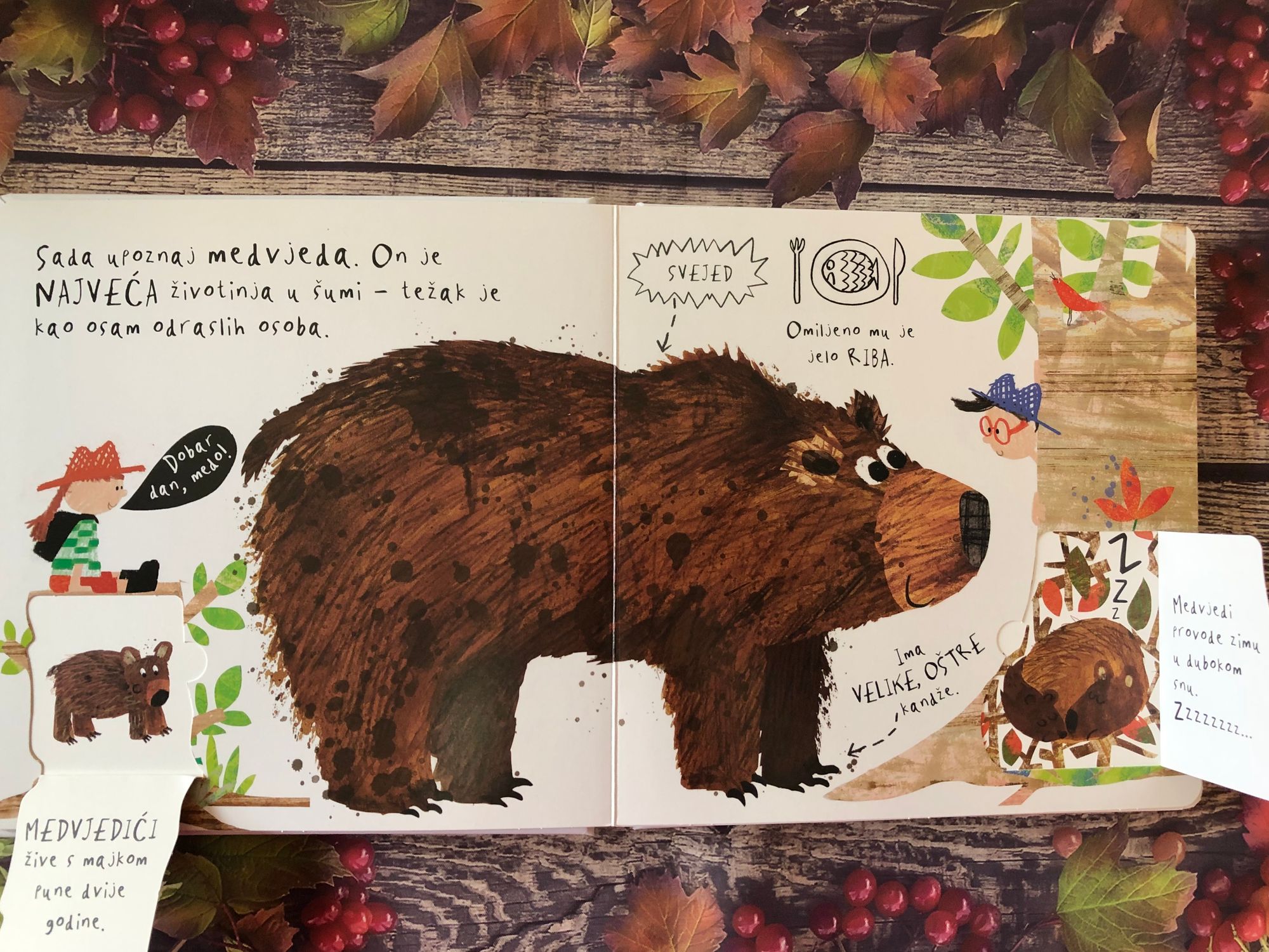 U ovoj slikovnici, iza ritmičnih, rimovanih, zanimljivih i poučnih stihova te vedrih i razigranih ilustracija skrivaju se neki od najpoznatijih šumskih stanovnika.