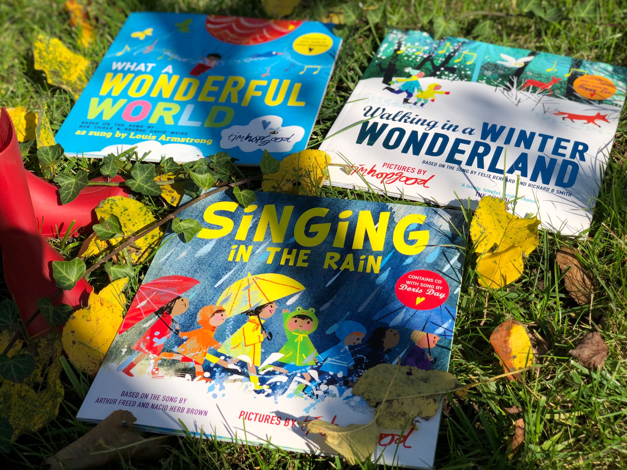 Sasvim slučajno sam našla ove slikovnice koje su zapravo ilustrirani zapisi teksta poznatih svjetskih glazbenih klasika. Nisam mogla odoljeti, i koliko god možda čudno zvučale, stvarno je zanimljivo pokušati ih čitati (još je zabavnije pokušati ih prevesti). Ilustracije su im krasne, vedre i lijepo prate tekst. Uz njih se dobije i CD s pjesmom te audio zapisom slikovnice koji u podlozi ima i zvučne efekte, a sve zajedno je djeci vrlo privlačno i zanimljivo.