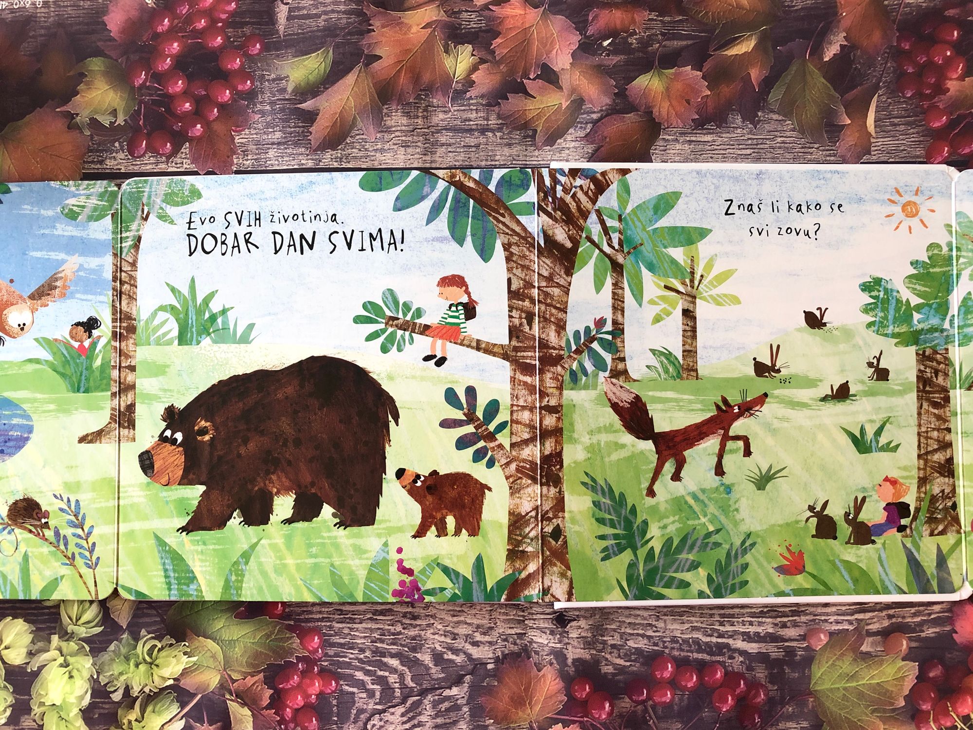 Iz Profila je nedavno stigla još jedna preslatka kartonska slikovnica s brojnim prozorčićima i preklopnim stranicama koja će povesti mališane u zanimljivu šetnju šumom te ih upoznati s prehrambenim navikama, domovima, načinom na koji se brinu o mladuncima ili pak nekim neobičnim osobinama jnajpoznatijih šumskih stanovnika - jelena, lisica, medvjeda, vukova, dabrova, vjeverica, miševa i šišmiša.