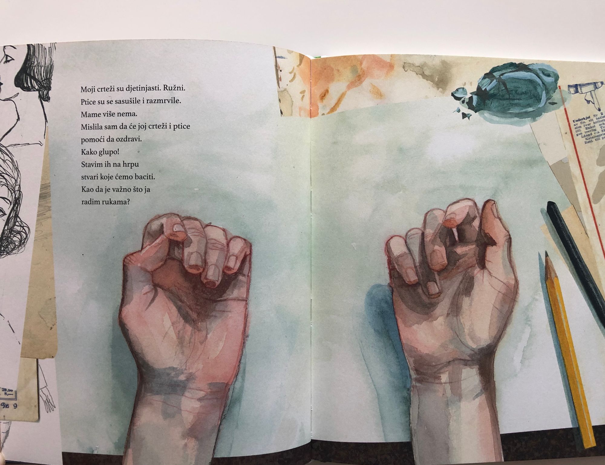 Ova predivna slikovnica koja, osim neopisivo lijepih ilustracija, donosi nježnu, toplu, dirljivu i izrazito ritmičnu poetsku priču o težini usamljenosti, o neobičnom, potpuno neočekivanom prijateljstvu te osjećajima ispunjenosti i radosti koje donosi pomaganje. Možda zbog slične teme, jako me podsjetila na priču o Lavu i ptici.