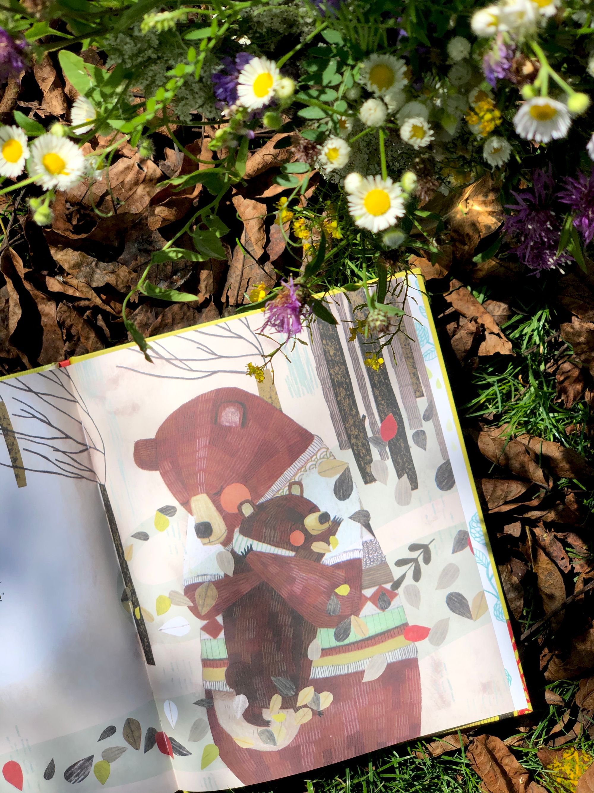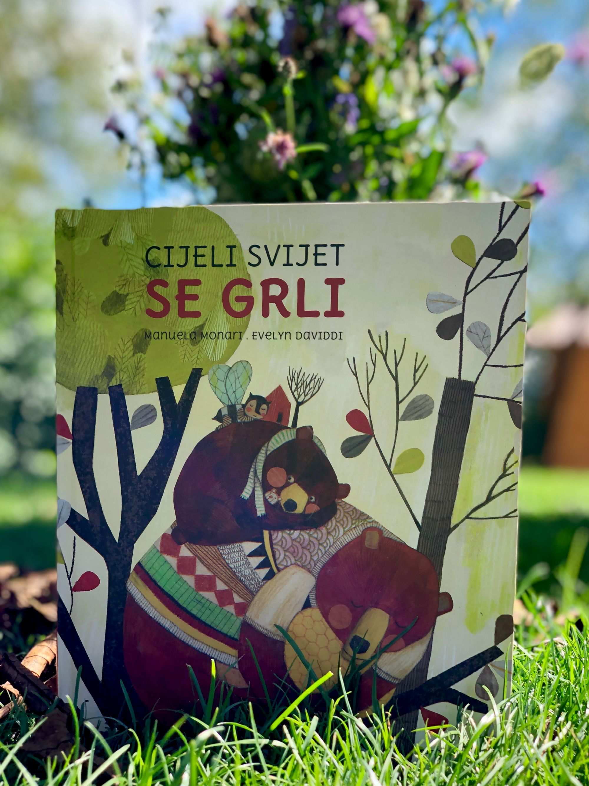 Nježna, dirljiva i inspirativna slikovnica koja nas uči kako je sve na svijetu povezano. Tata medo i mali medvjedić uživaju u jesenskoj šetnji šumom. Dok medvjedić znatiželjno promatra boje i osluškuje zvukove šume te poput svakog djeteta obasipa tatu medvjeda pitanjima, a on mu strpljivo i nježno odgovara, dolaze do zaključka da su ljudi, biljke, životinje i prirodne pojave zapravo povezani u jedno veliko klupko, sve na svijetu se grli. Ilustracije su prekrasne, tople i pozivaju na nježne zagrljaje.
