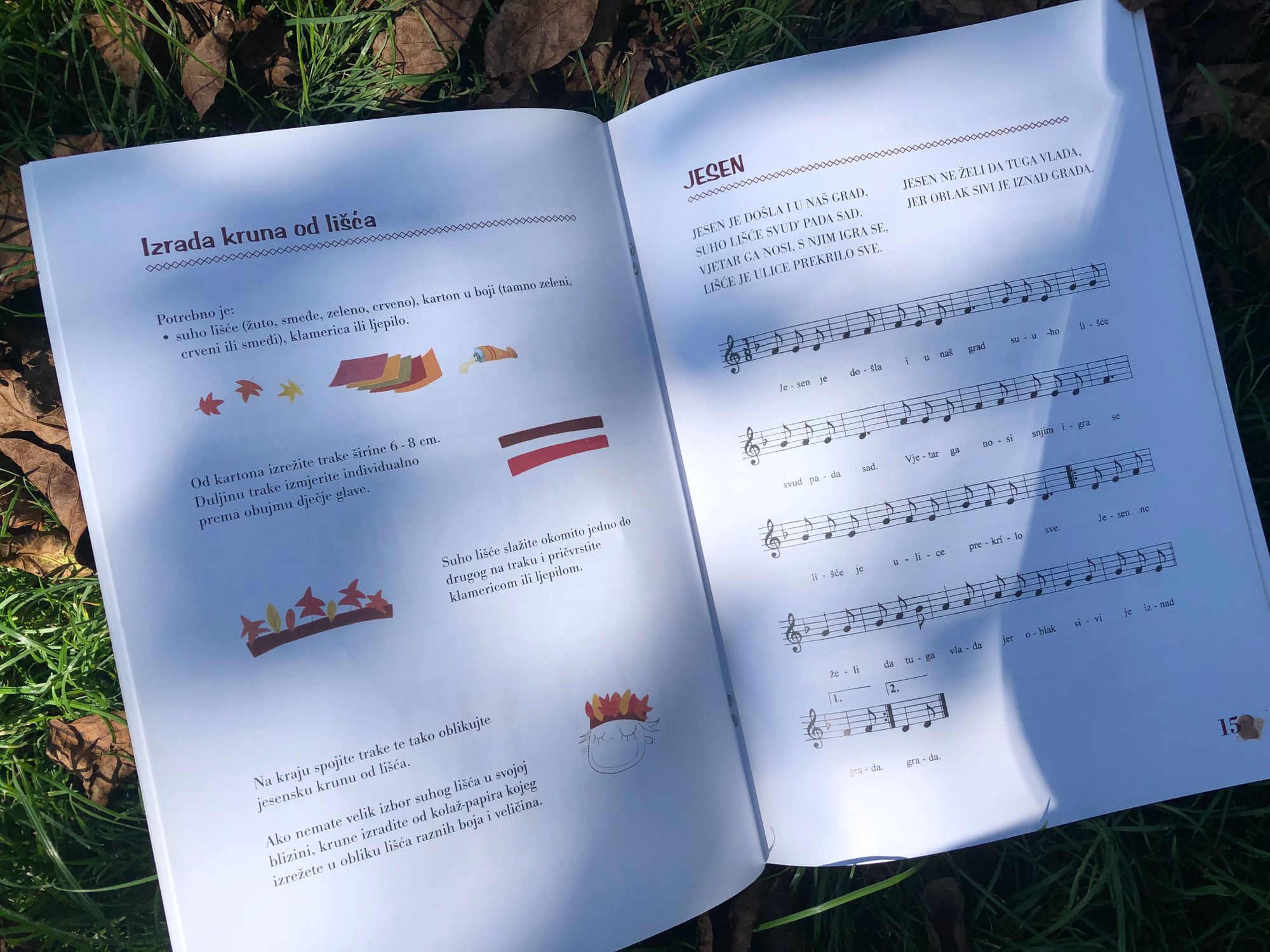 Priručnik iz serije Četiri godišnja doba u kojem ćete pronaći tekstove i note jesenskih pjesama, priče, slikopriču, igrokaze, zagonetke te upute za izradu strašila, sove, krune od lišća, jesenke šume, veselih bundeva ili slatkog voćnog jesenskog koktela.