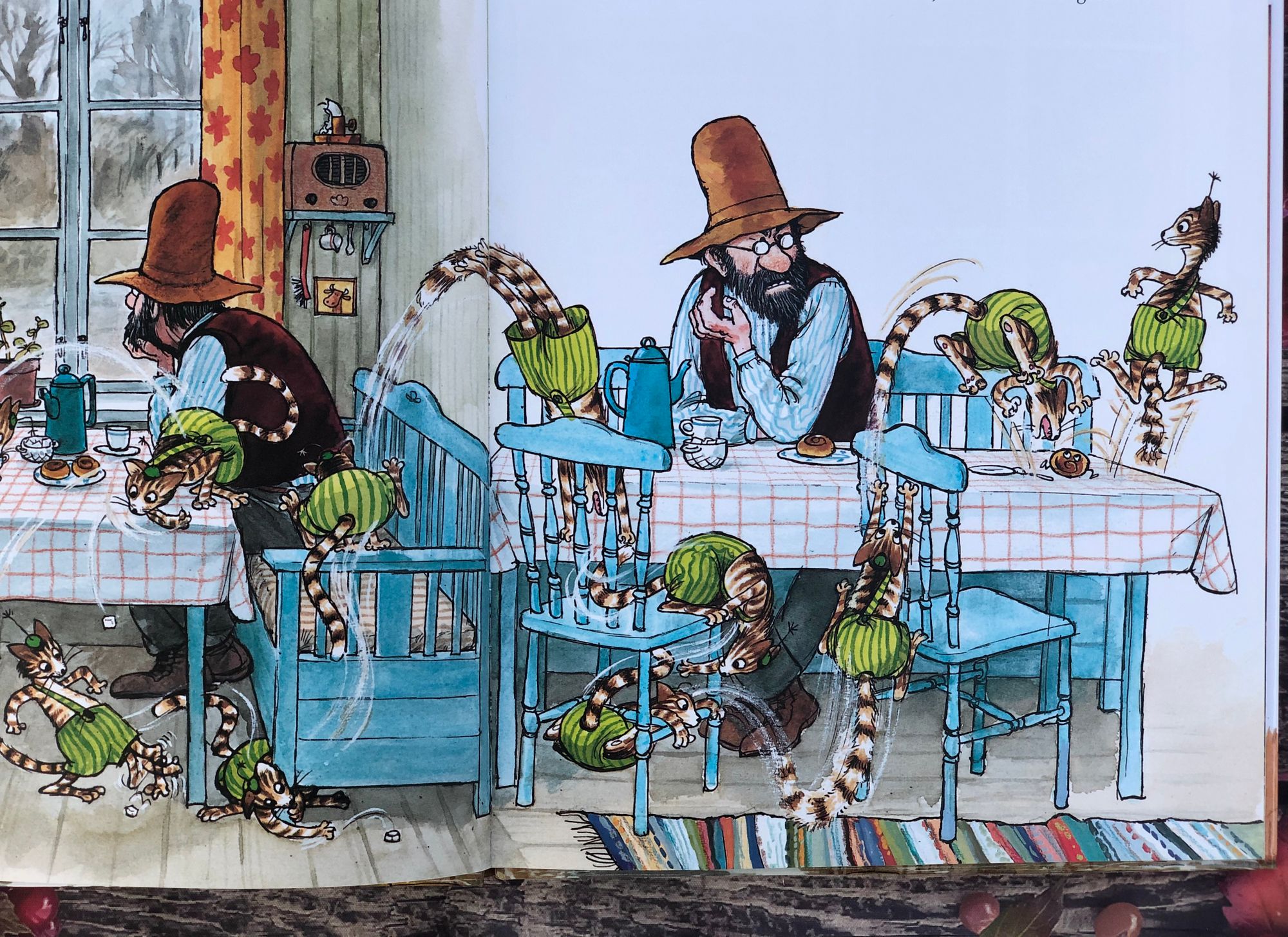 Sve da u njima nema ni jedne napisane riječi, ove slikovnice bi savršeno prenosile priču, emocije i dinamiku radnje i samo preko ovih neopisivo detaljnih i rasskošnih ilustracija. Pettson je ima imao zaista, ali zaista težak dan, no sigurno niti ne sumnjate da Findus nije pronašao način da ga popravi.