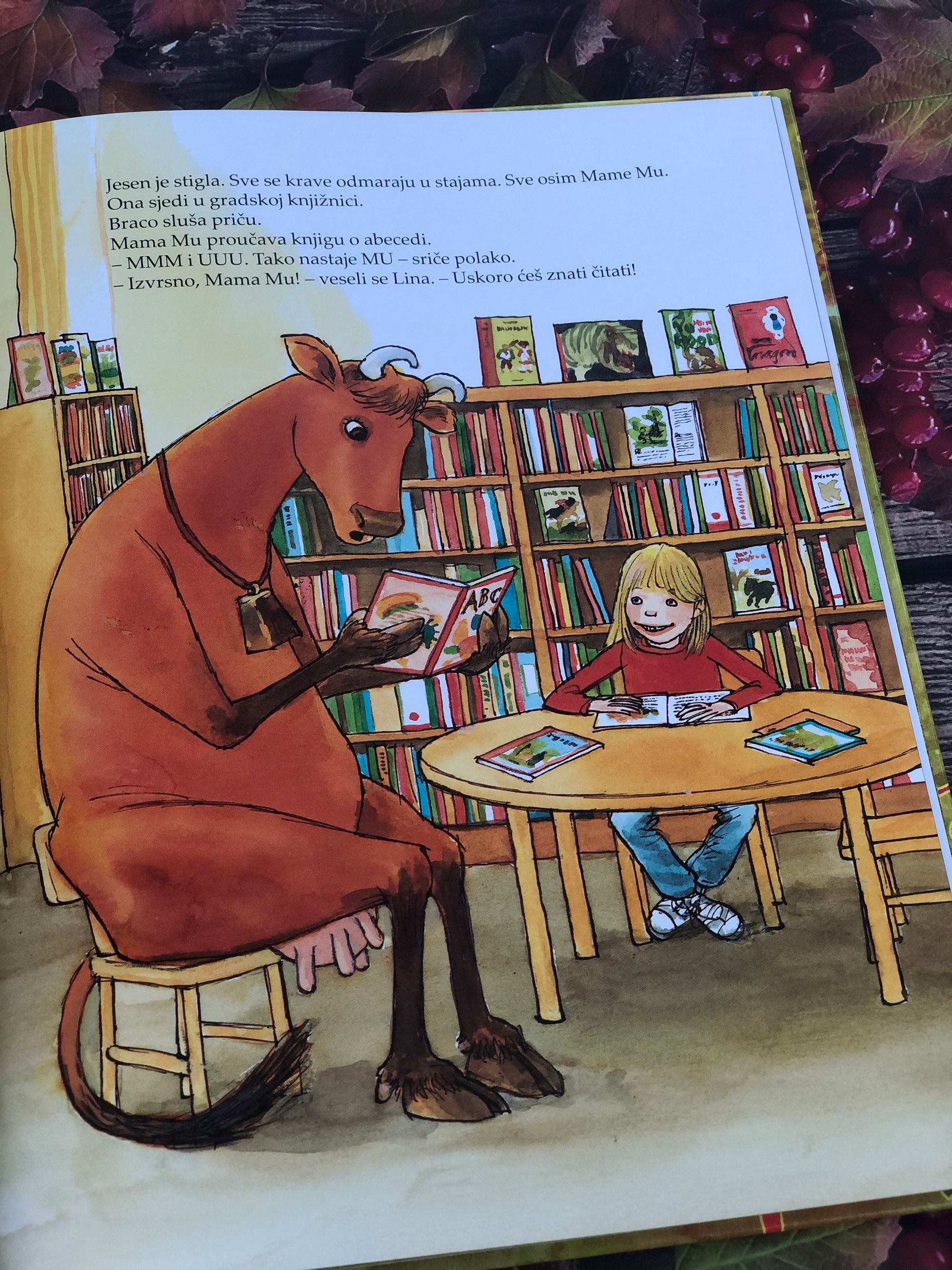 Najbolji način za provesti kišni jesenski dan je posjetiti knjižnicu i uživati uz dobru knjigu. Mama Mu to zna. Ne bi to bilo ništa neobično da Mama Mu nije krava. No ona je veoma pametna i živahna krava koja je naučila cijelu abecedu i rado provodi vrijeme čitajući u gradskoj knjižnici. Njezin prijatelj Kraks koji više voli uzbuđenja i akciju nije time oduševljen i baca se na pisanje knjige o najvećem misteriju u znanosti: Zašto je trava zelena, a mlijeko bijelo?