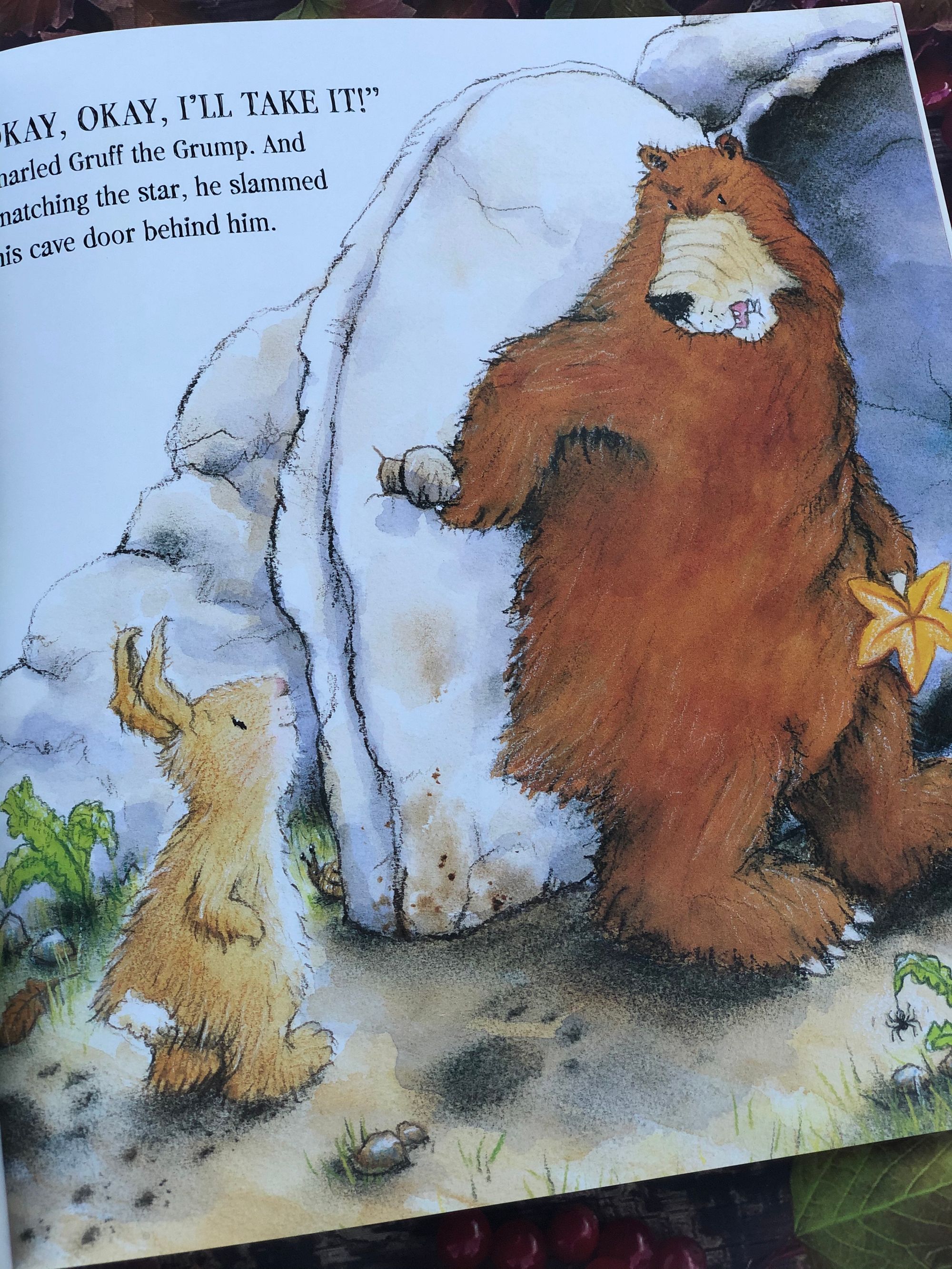 Gruff je veliki, namrgođeni, vječno neraspoložen medo koji živi sam u prašnjavoj zapuštenoj špilji. Nije baš društven, stoga kada jednoga jutra sretne malenog zeku koji visi s grane pokušavajući spasiti zvijezdu padalicu, koja je ustvari žuti opali list, nađe se u dotad nepoznatoj situaciji. Ipak, odluči pomoći zeki, a on mu iz zahvalnosti pokloni "zvijezdu". Medo je ponese u šilju i spremi na policu i ne sluteći da je to samo početak jednog neobičnog, ali divnog prijateljstva.