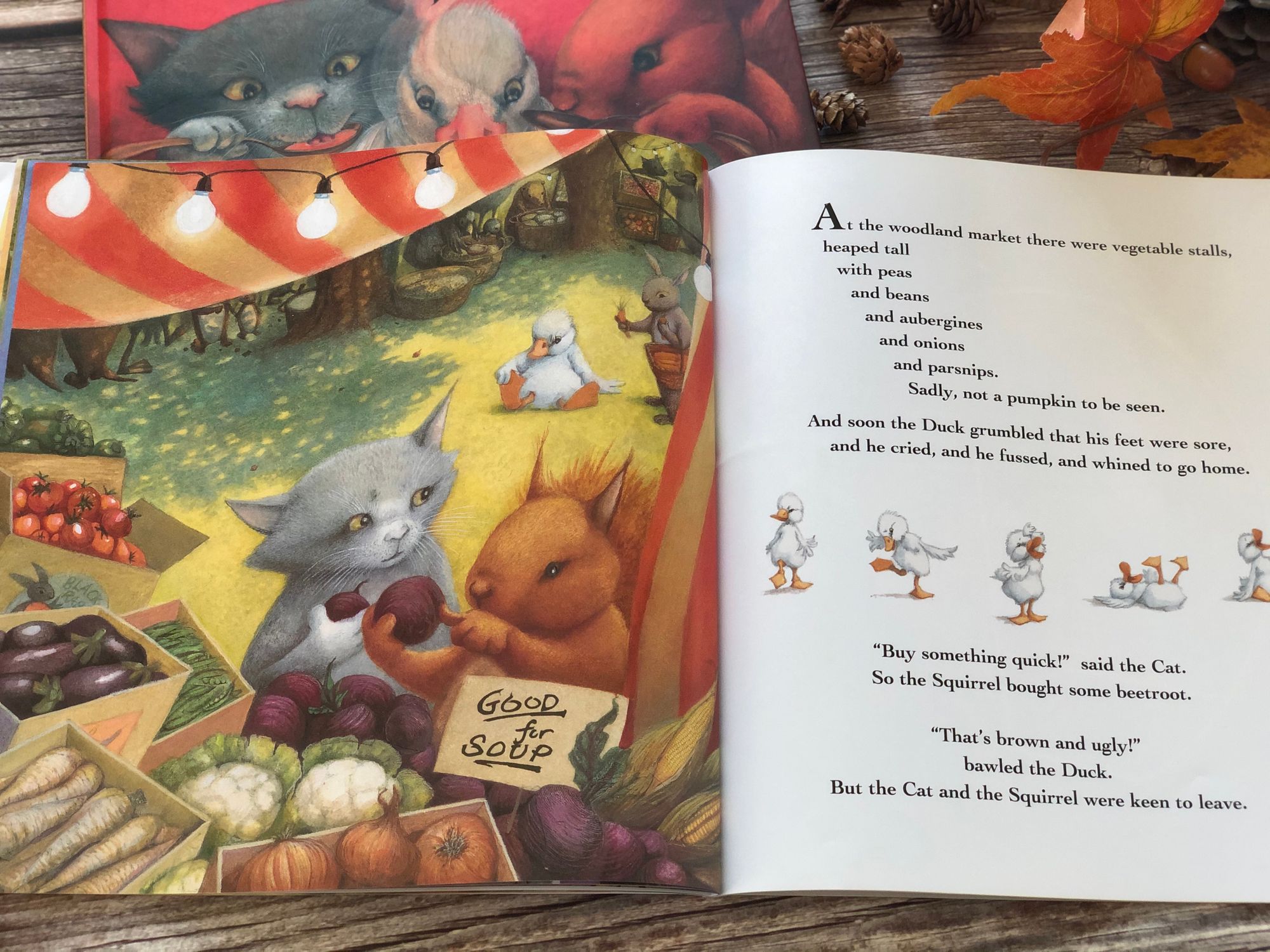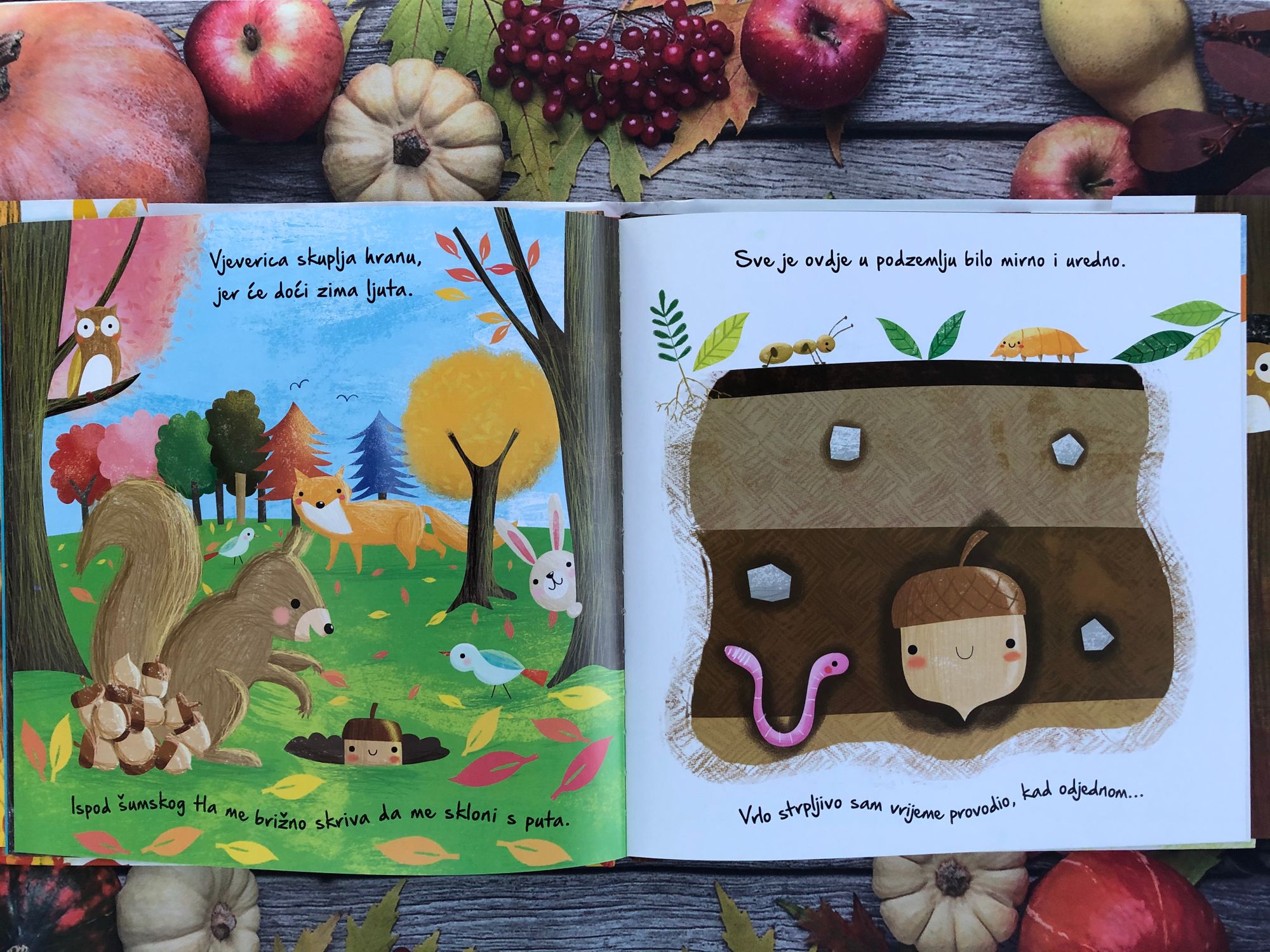Jedan od mojih ovogodišnjih favorita upravo je ova bajkovita, predivno ispripovijedana i nevjerojatno lijepo, detaljno i živo ilustrirana slikovnica. Zbog teme koju donosi te edukativnih i odgojnih elemenata koji je prožimaju prigodna je za čitanje u bilo koje doba godine, no kolorit ilustracija te smirujući ugođaj mene podsjećaju baš na toplinu boja i bogatstvo jesenskih plodova.
