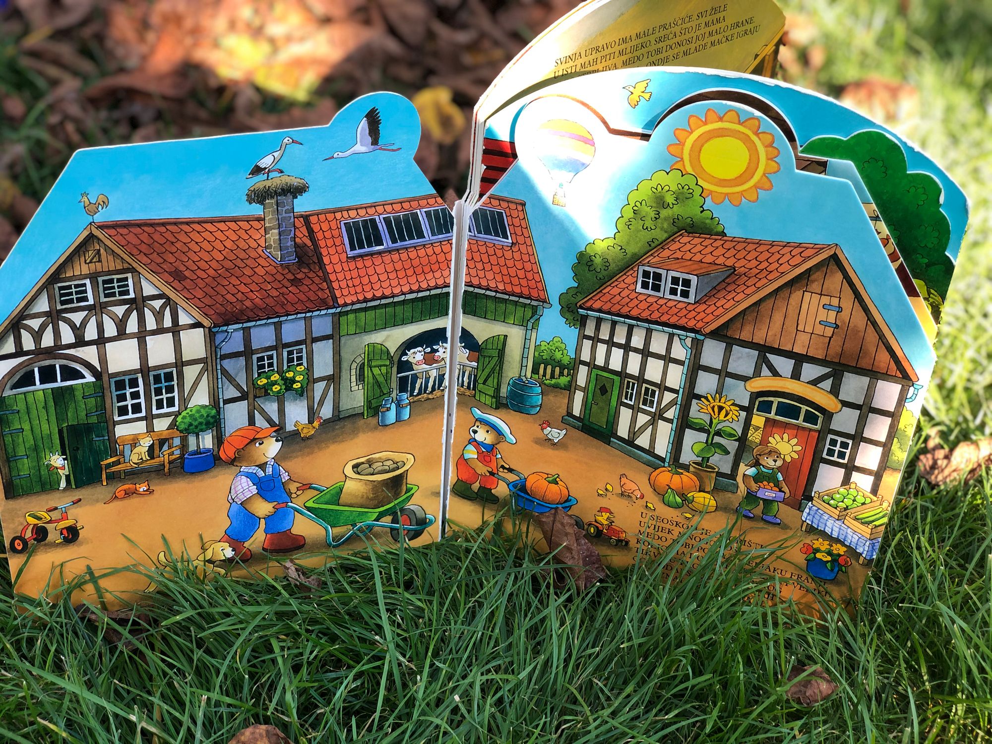 Priče s Voćne farme obožavamo, a ove okretalice s po dvije priče su mojim mališanima posebno zanimljive. Ako ih niste još upoznali, na Voćnoj farmi živi obitelj Čizmić, mama, tata te djeca Dora i Jurica. Česti pratitelji u njihovim zgodama su i pas Hrđo i mačka Puslica.