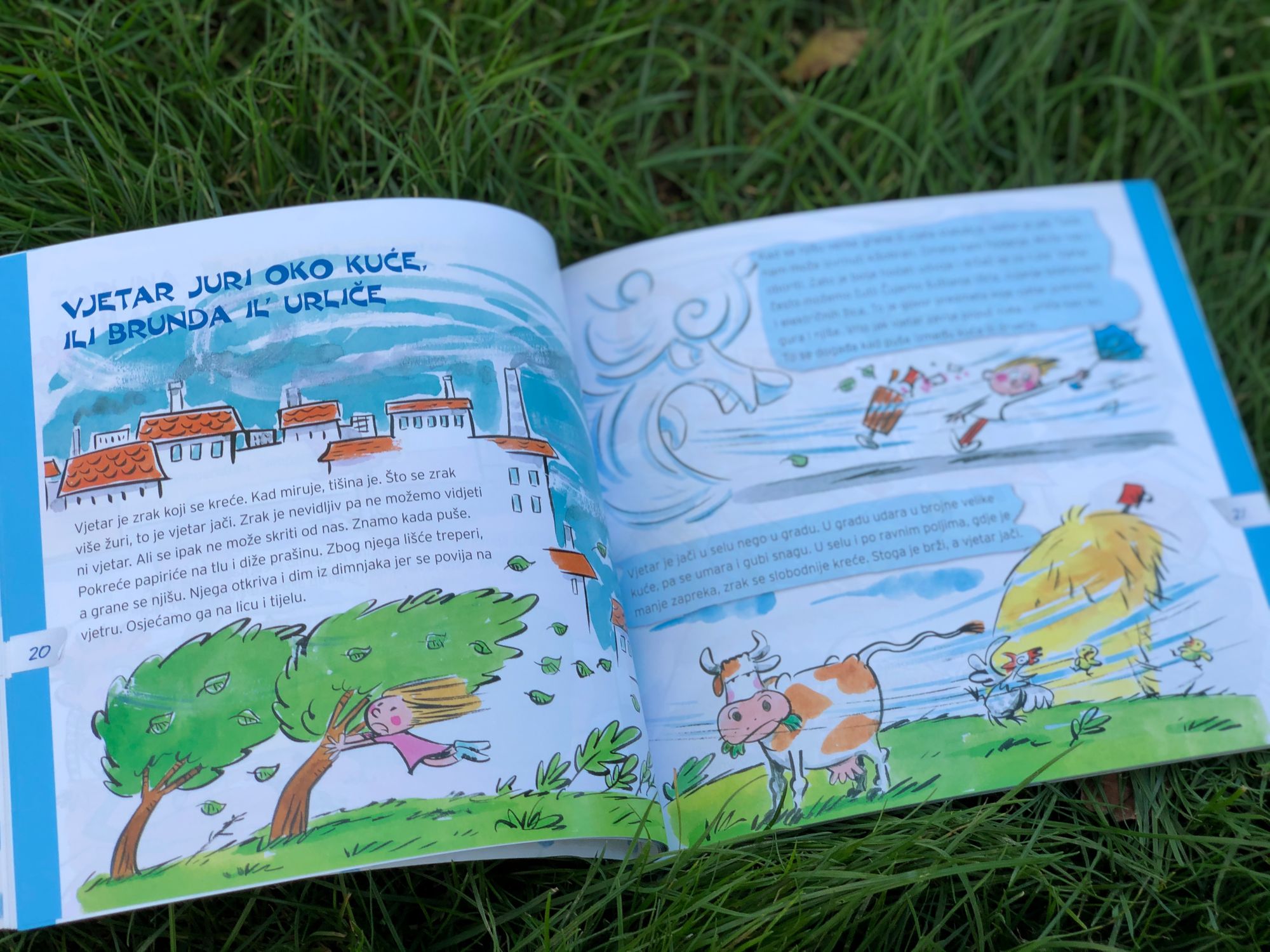 Saznat će zašto je odjeća od zraka prozirna i laka, kako vjetar juri oko kuće, zašto munja bliješti a grom trešti, čemu služe meteorološke postaje, koja je razlika između čistoga i prljavog zraka, znaju li lastavice kada će padati kiša…