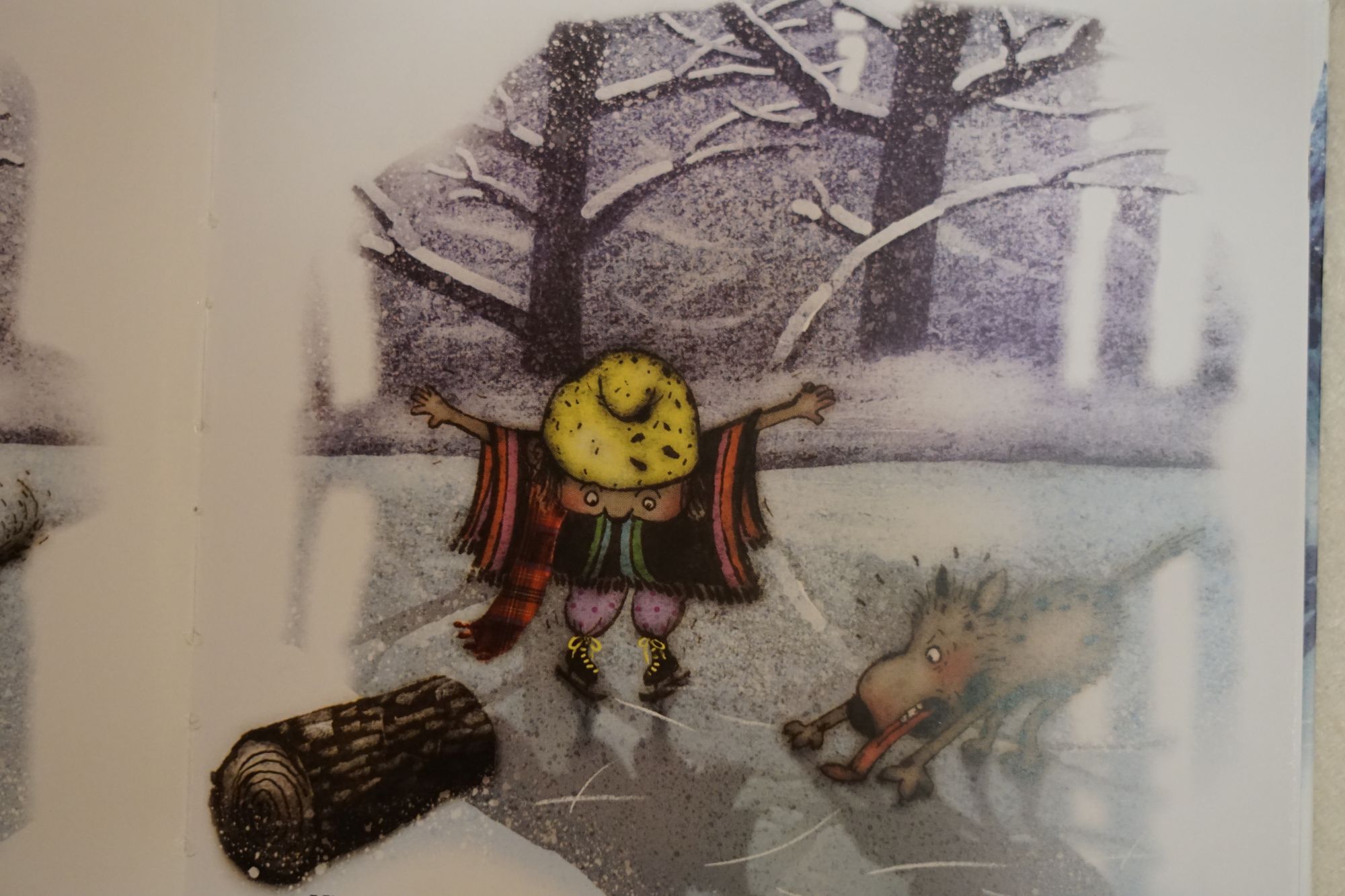 Ilustracije su mi predivne u svojoj jednostavnosti, a ipak velikoj izražajnosti i duhovtim detaljima. Kako je samo zorno i duhovito prikazana jurnjava po ledu ili vukov pokušaj lizanja leda.