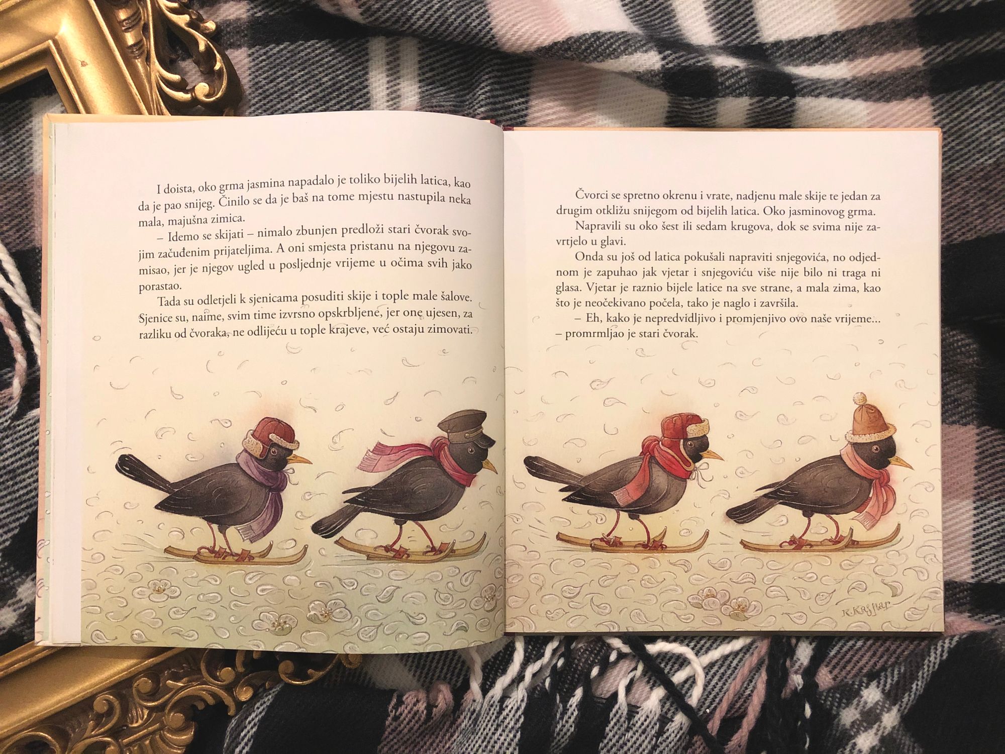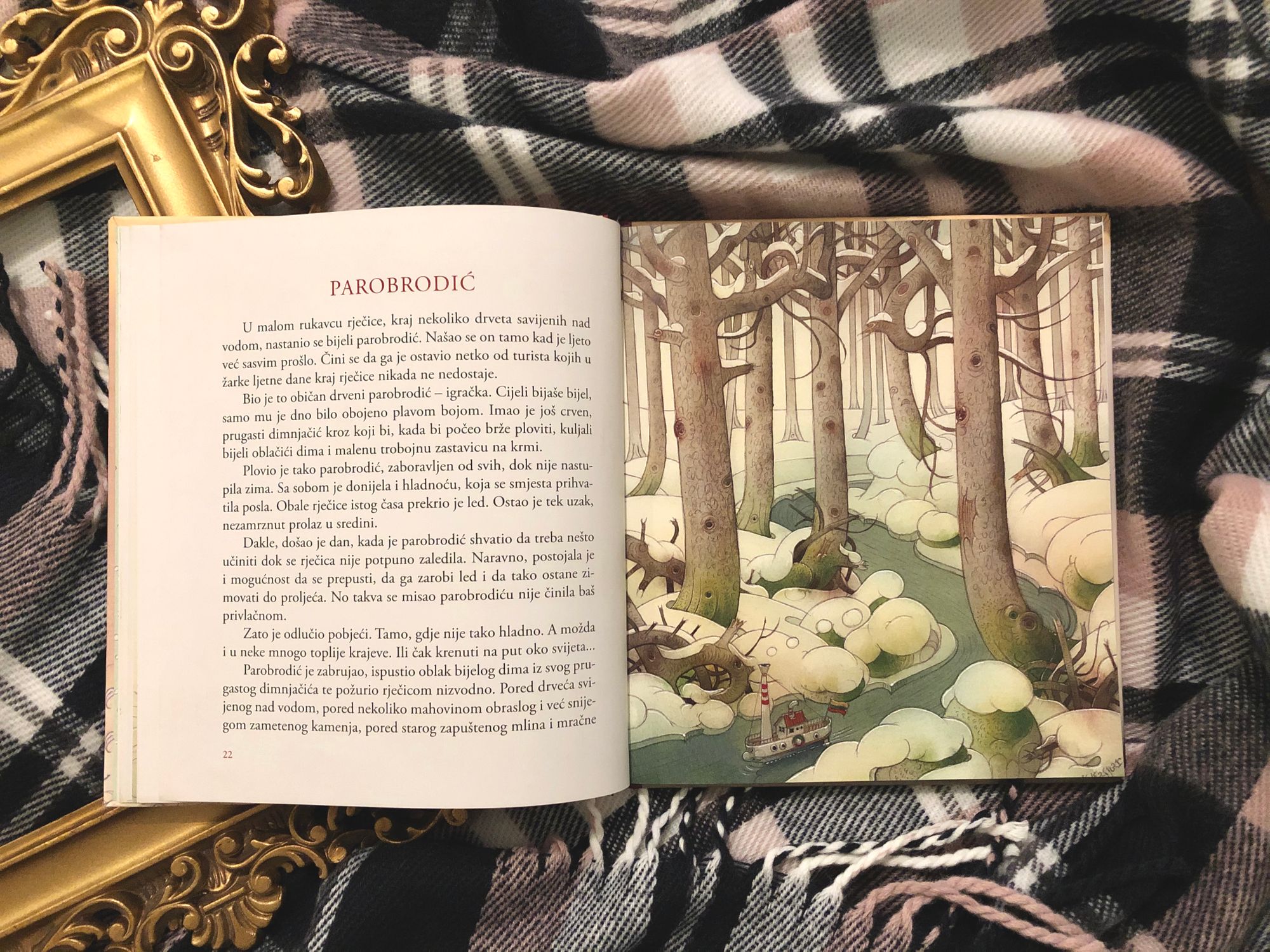 Zajedno smo pročitali priču Mala zima, o zaigranim čvorcima koje pokazuju da uz moć mašte čak i ljeti možeš skijati i (pokušati) napraviti snjegovića, a kroz priču Pande smo saznali kako su ti simpatični medvjedi uopće dobili svoje crne mrlje. Tu su još priče o malom parobrodu koji je proputovao svijet, o neograničenoj moći dječje mašte, o kućici koja se zaputila u šetnju jer joj je dosadilo biti uvijek na istom mjestu, o krevetu koji se iskrada kroz prozor kako bi se igrao s raznobojnim jesenskim lišćem, o uobraženom balonu i još mnogim čudima i čudesima koje vas natjeraju da sve oko sebe pogledate drugačijim očima.
