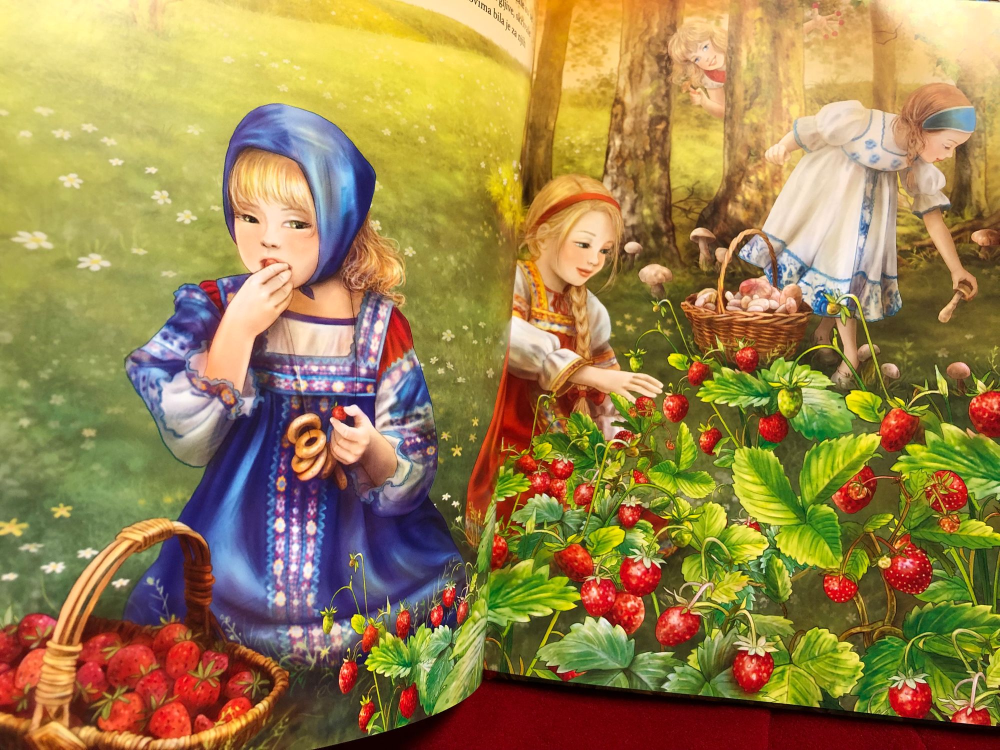 Kako je i sama izjavila, želja joj je bila „svojim ilustracijama pružiti djeci čaroliju i ushićenje koje su njezina, i starije generacije osjećale zavirivši u lijepo ilustriranu knjigu“. Majstorski zadržava izvornost priče i istovremeno je nadograđuje svojoj osobnom impresijom. Potrudila se prikazati bogatstvo i ljepotu ruske tradcijske kulture, čije elemente vidimo u odjeći likova te interijeru medine kolibe (babuške ili točnije - matrjoške, oslikane zidni drveni ukrasi, ruska princeza kao porculanska lutka i mnogi drugi).