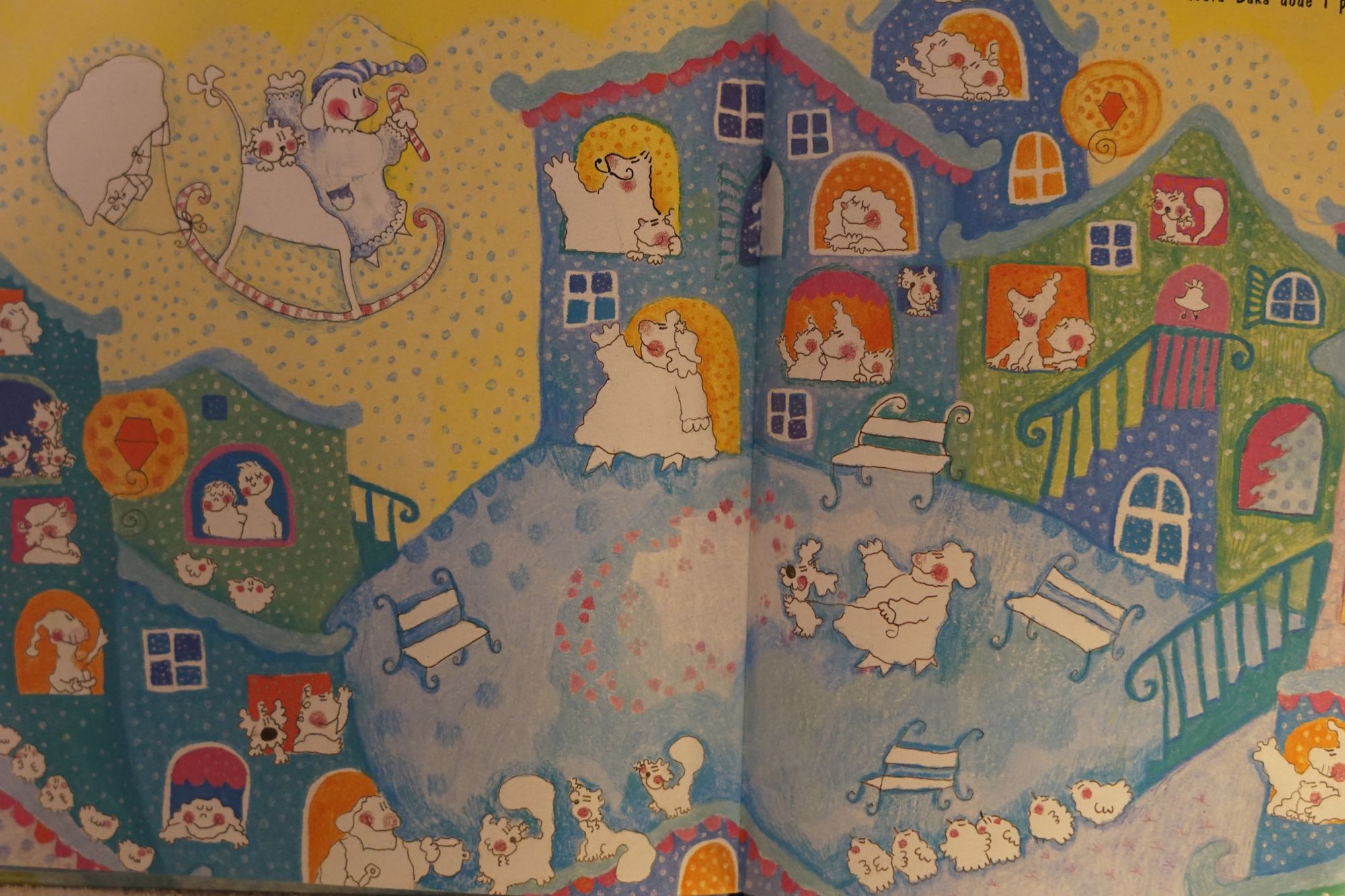 Iako je slikovnica izdana (sada već davne) 1994. godine nisam je prije čitala. Baka Snješka je potpuno novi lik, kako djeci, tako i meni. Jako me zanimalo tko je i kakva je. I mogu vam reći da je baš štosan i opak babac. Živi u svojoj kućici punoj darova, negdje daleko u polarnom području, a društvo joj ne prave patuljci nego jedan mačak Mic - Mac i dva irvasa. Iako više nije u cvijetu mladosti vrlo je vitalna, društveno aktivna i osviještena, barem jedne noći u godini. Svojim turbo saonicama kreće na put. Prvo posjećuje bijele zečiće u Zečaciji i daruje im, a što drugo nego mrkvice. Sljedeća postaja je dvorac vilenjaka u kojemu je osim vila i vilenjaka srdačno dočekuje i Saurus Dino. Dobro uigrana ekipa prvo se počastila jelom i pićem, a zatim su uživali u snježnim radostima. I dok su vilenjaci i Saurus Dino ronili krokodilske suze zbog rastanka, suze radosnice potekle su među morskim životinjama jer je i za njih imala darove. Baka Snješka je takva faca da ne čudi što je omijena kako među životinjama, tako i među ljudima. Drago mi je što sam ovu slikovnicu uvrstila na naš popis jer su dječica upoznala ne samo zanimljiv novi lik, već i mnogo važnije, maestralan, zaigran, osebujan, ritmičan i neopisivo duhovit Kanižajev način pisanja.