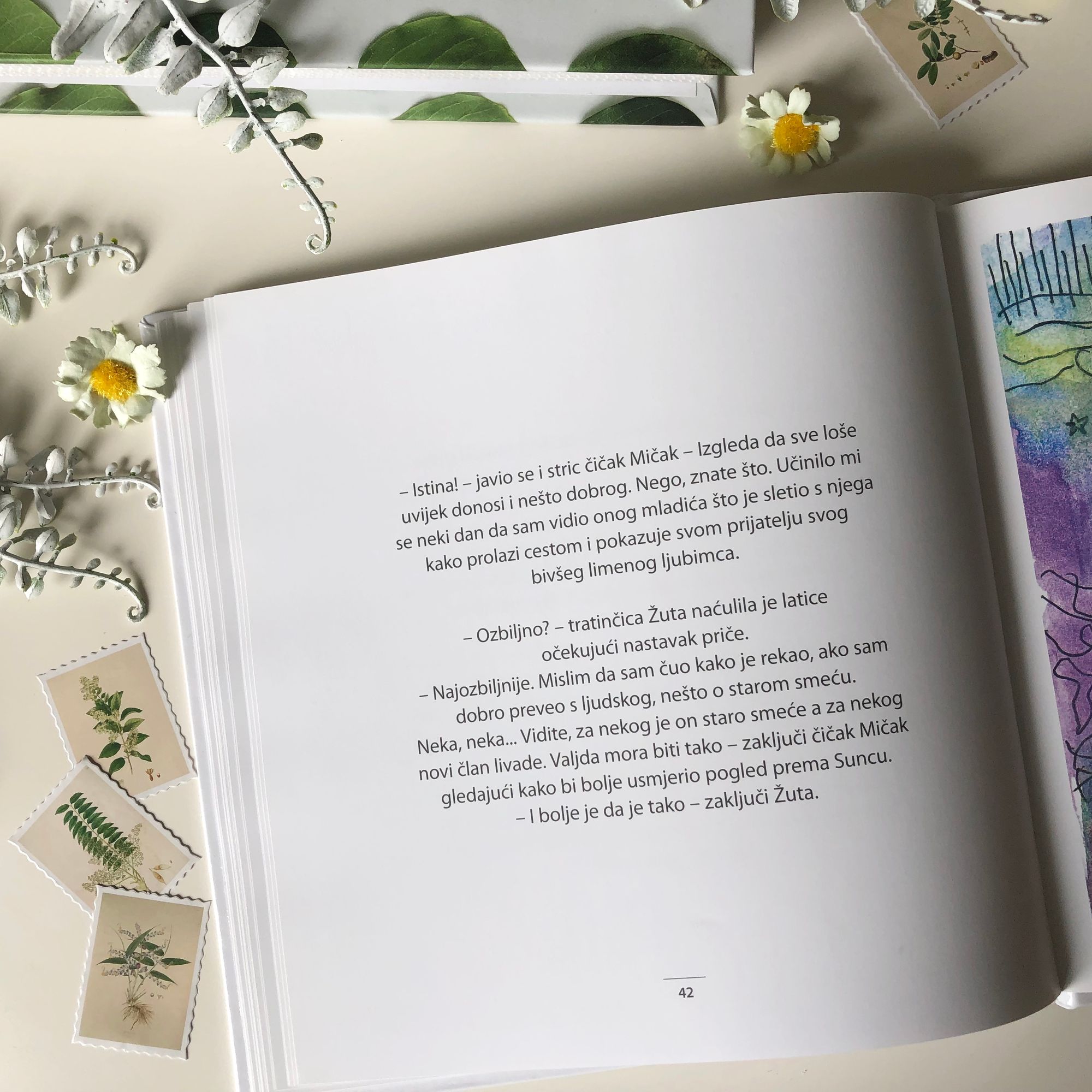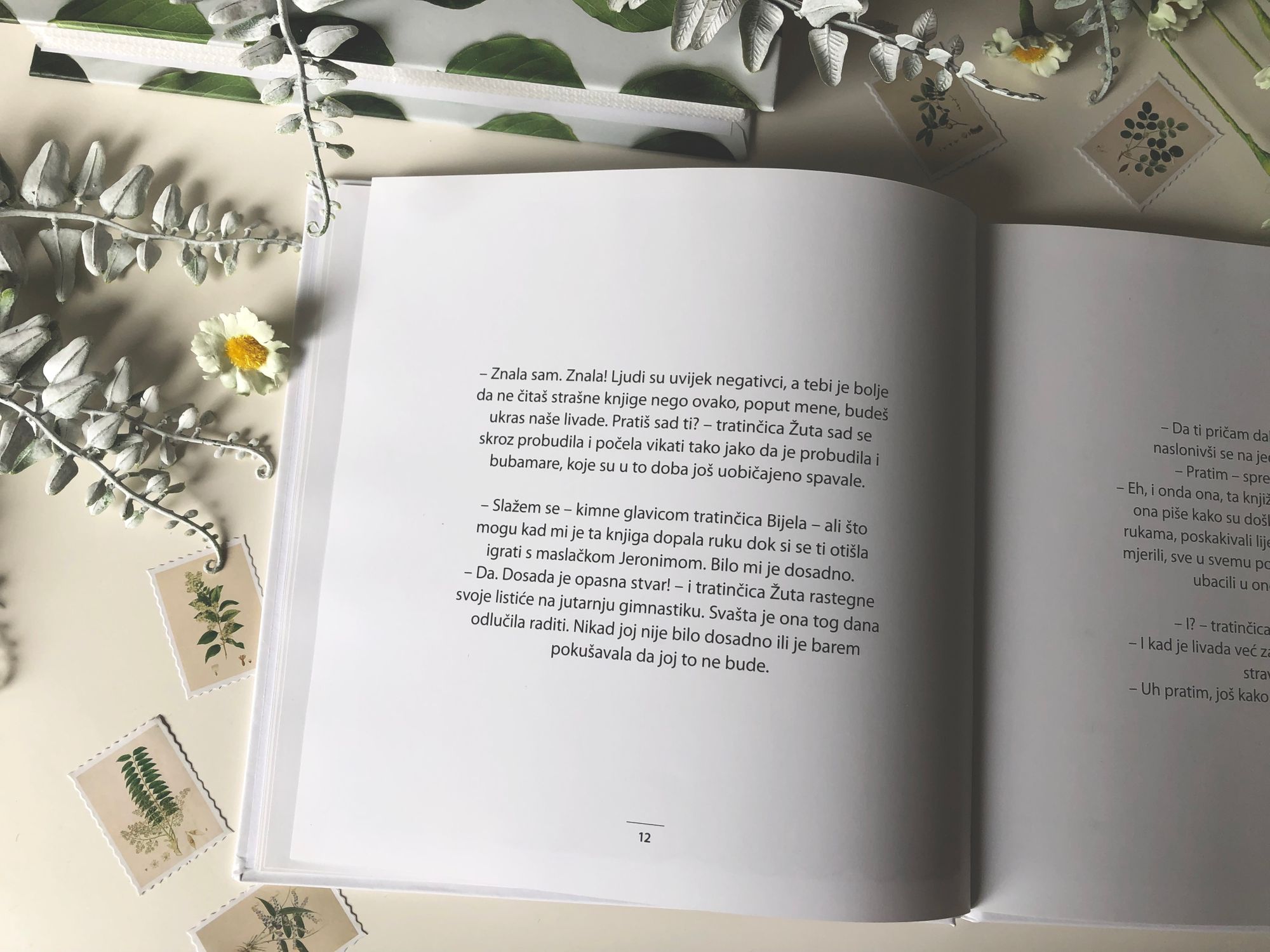 A onda pročitamo početak i shvati da tu nema nikakvih svjetlosnih mačeva ni robo-cvjetića koji se svojim ispaljivačima super-latica bore protiv mutiranih kukaca već tek dvije (ne)obične tratinčinčice koje razgovaraju o jednakom moćnom i čarobnom sredstvu – knjizi.
