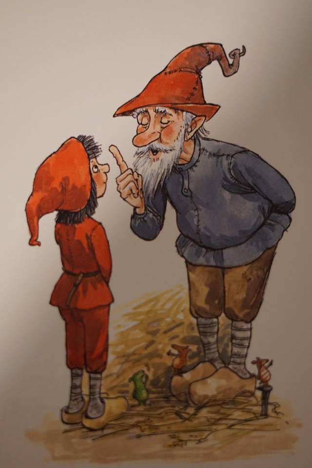 I danas smo uživali u još jednoj slikovnici fantastičnog Svena Nordqvista, no ovoga puta ne na imanju simpatičnog starčića Pettsona već u čudesnom svijetu kućnih patuljaka koji su dio švedskog folklora. Prema predaji, ti simpatični, uglavnom bradati patuljci s povećim nosom i crvenom dugačkom kapom sa šiljastim vrhom, zaštitnici su domova, djece i farmi. Kroz cijelu godinu brinu o ljudima i životinjama s imanja na kojem žive. U znak zahvale i poštovanja ljudi im na Badnjak ostavljaju tanjur božićne kaše. No iako dobroćudni i uviijek spremni pomoći, patuljci znaju biti i vrlo gnjevni i osvetoljubivi ukoliko se zaboravi na njih. A upravo to se i dogodilo. Ove badnje večeri, zaokupljeni nekim novim božićnim trendovima (Djedom Božićnjakom) domaćini su potpuno zaboravili svoje kućne patuljke i njihovu porciju kaše.